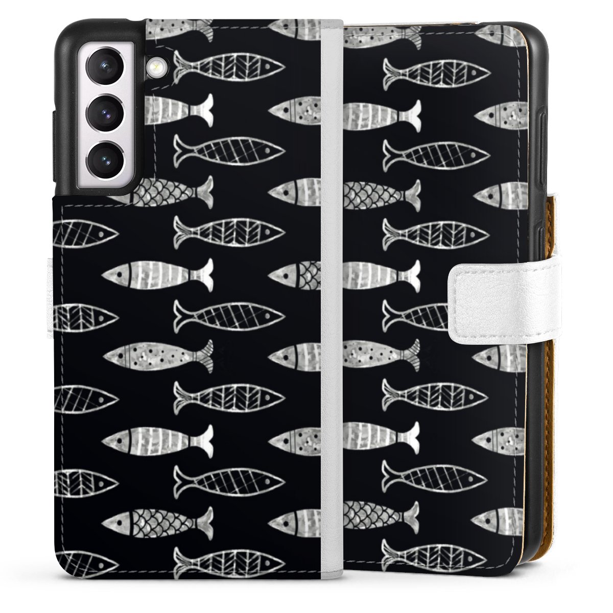 For our Sideflip Case we are using our advanced direct printing technology. The back and frontside are fully printabale, the inside of the phone bag is left unprinted. You can order the phone case without print, printed completely or also with a partial print.