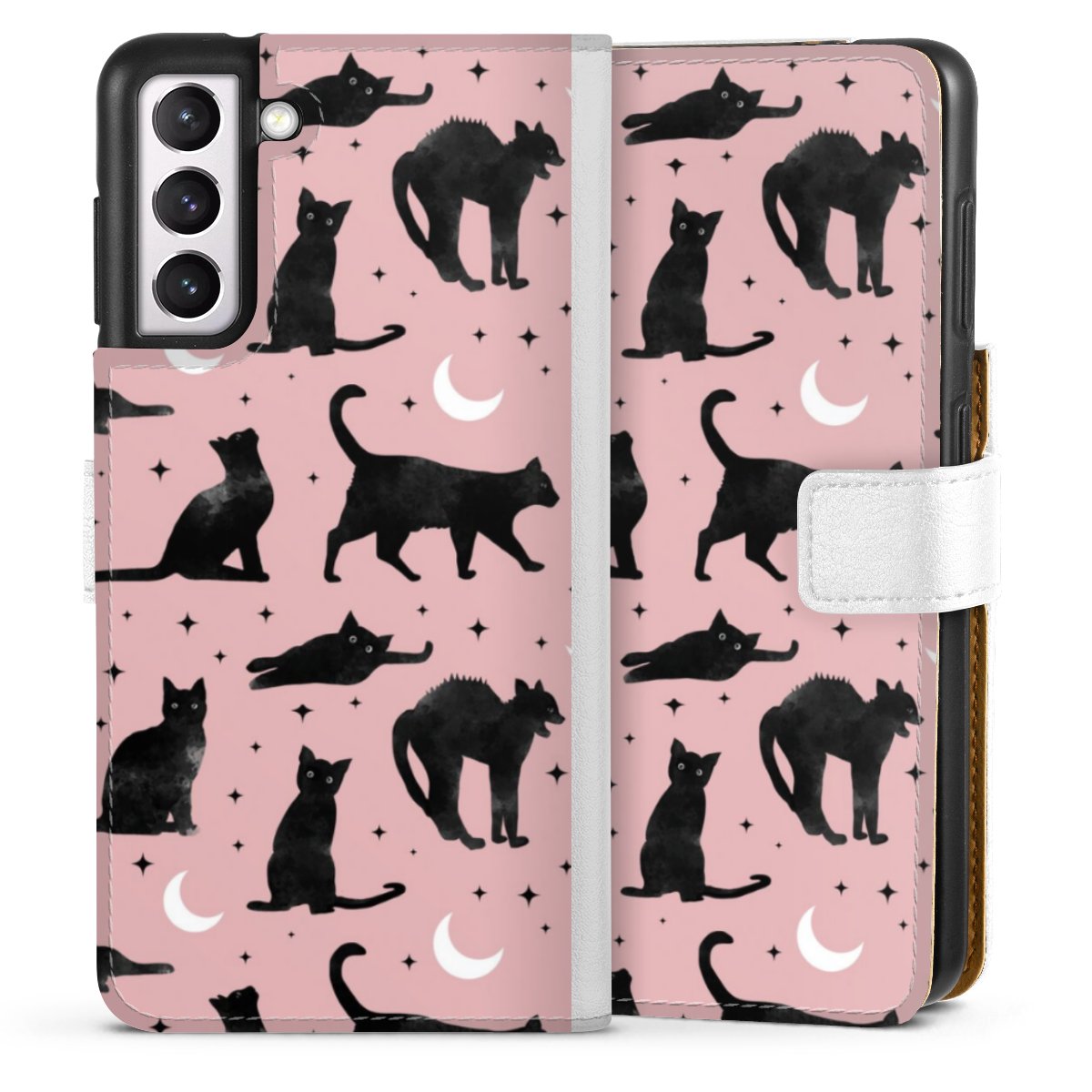For our Sideflip Case we are using our advanced direct printing technology. The back and frontside are fully printabale, the inside of the phone bag is left unprinted. You can order the phone case without print, printed completely or also with a partial print.