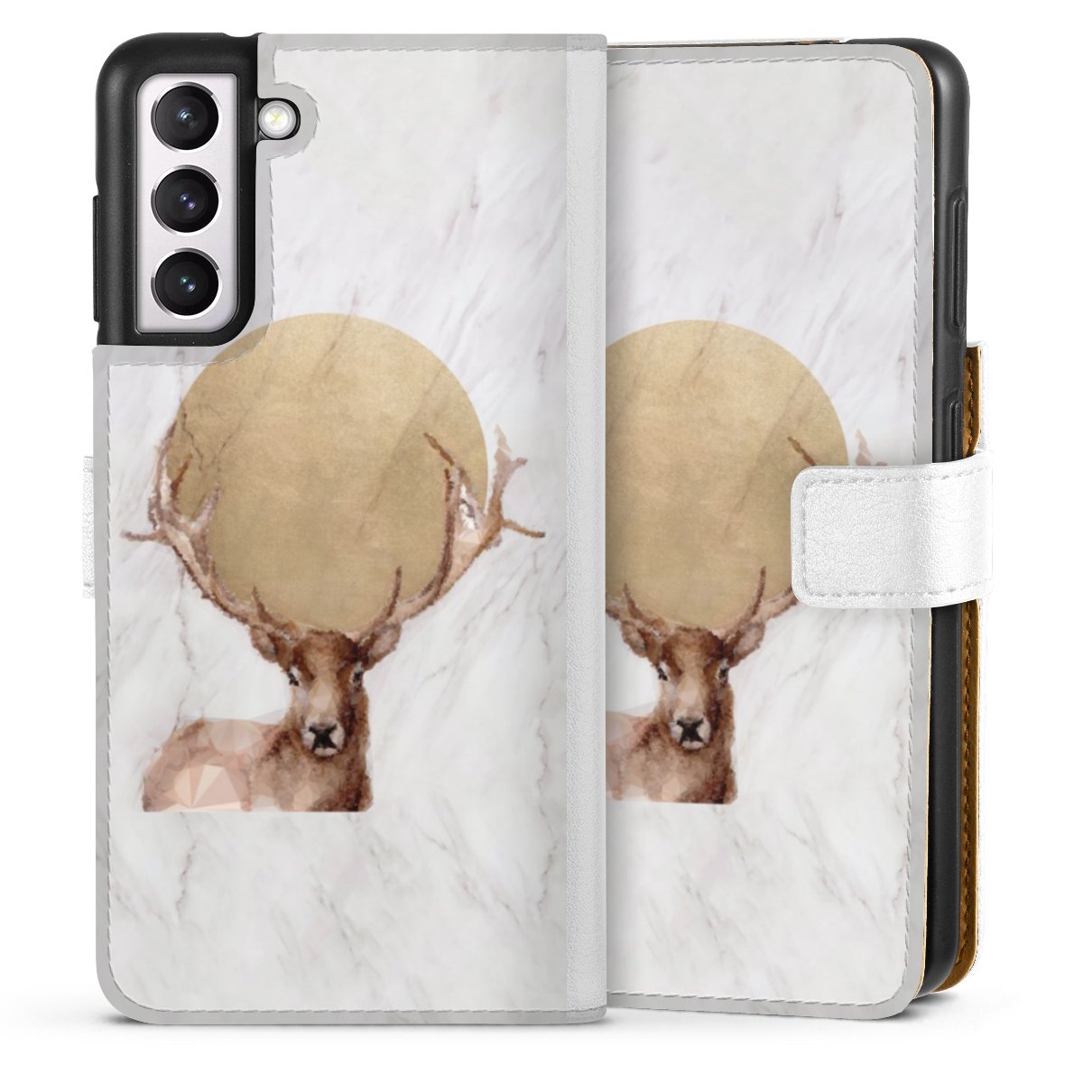 For our Sideflip Case we are using our advanced direct printing technology. The back and frontside are fully printabale, the inside of the phone bag is left unprinted. You can order the phone case without print, printed completely or also with a partial print.