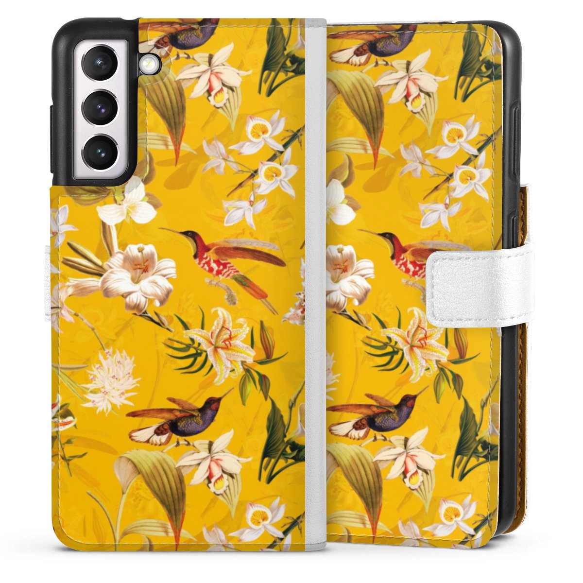 For our Sideflip Case we are using our advanced direct printing technology. The back and frontside are fully printabale, the inside of the phone bag is left unprinted. You can order the phone case without print, printed completely or also with a partial print.