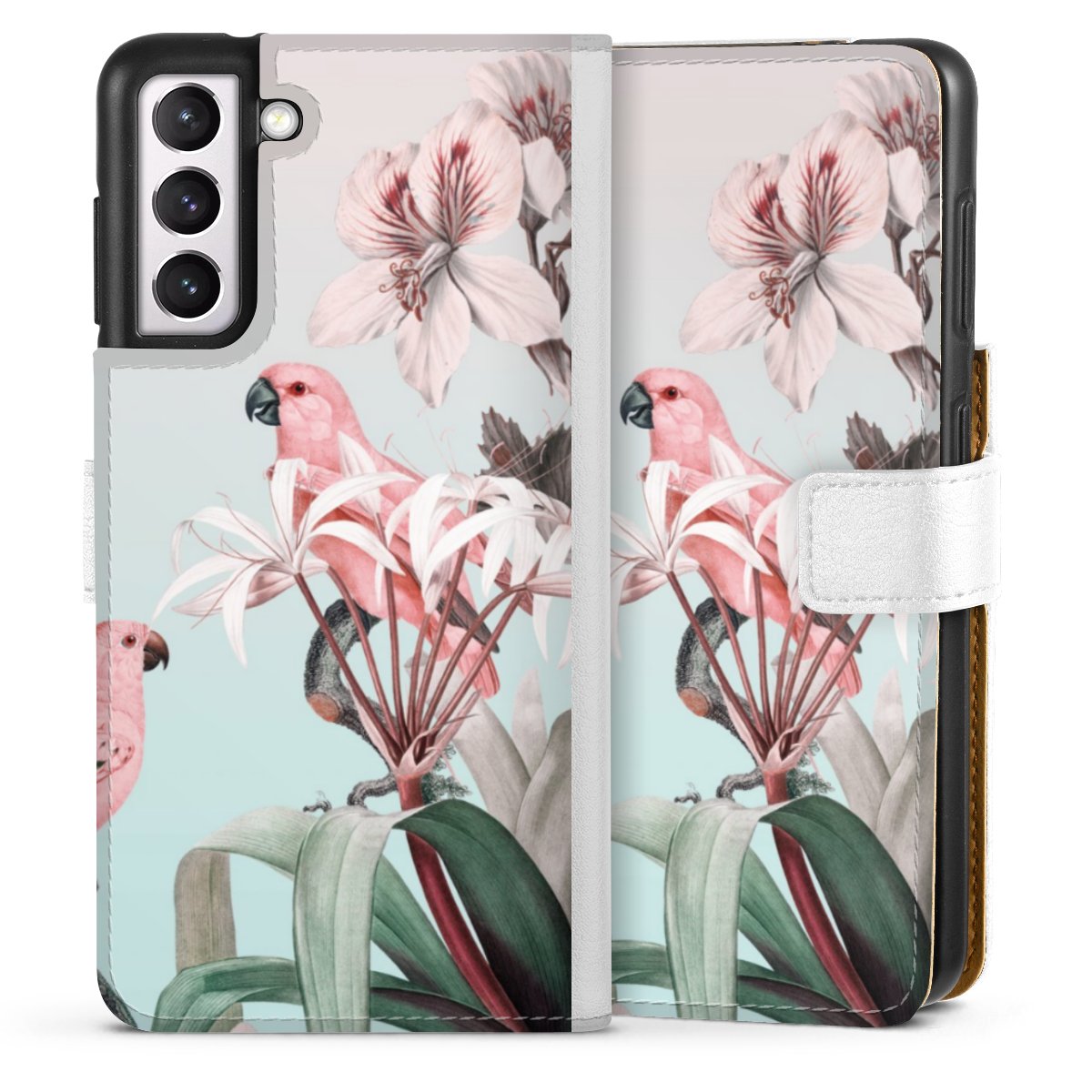 For our Sideflip Case we are using our advanced direct printing technology. The back and frontside are fully printabale, the inside of the phone bag is left unprinted. You can order the phone case without print, printed completely or also with a partial print.