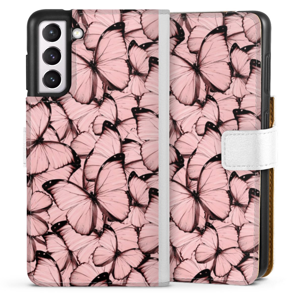 For our Sideflip Case we are using our advanced direct printing technology. The back and frontside are fully printabale, the inside of the phone bag is left unprinted. You can order the phone case without print, printed completely or also with a partial print.