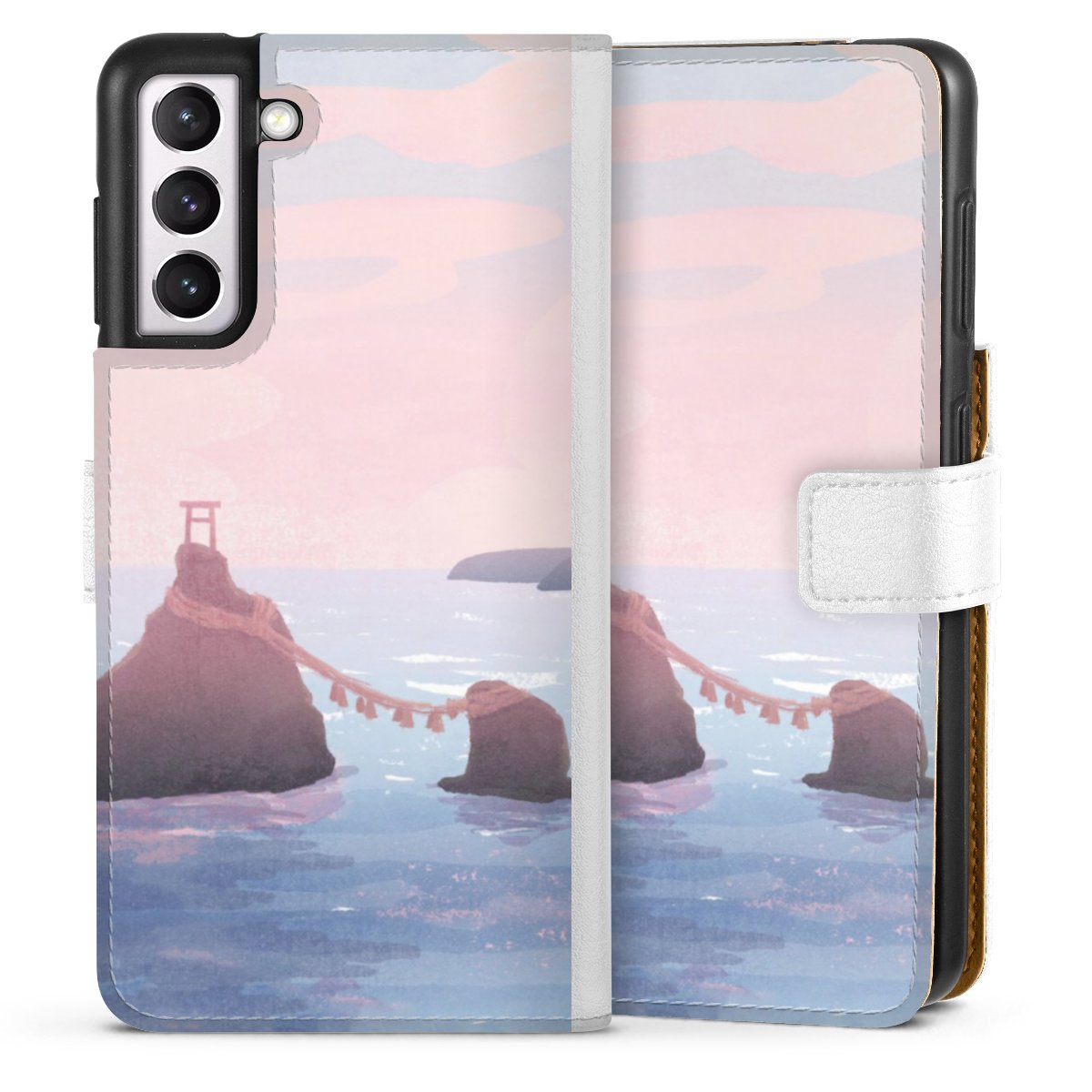 For our Sideflip Case we are using our advanced direct printing technology. The back and frontside are fully printabale, the inside of the phone bag is left unprinted. You can order the phone case without print, printed completely or also with a partial print.