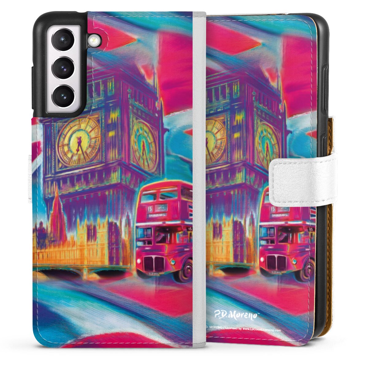 For our Sideflip Case we are using our advanced direct printing technology. The back and frontside are fully printabale, the inside of the phone bag is left unprinted. You can order the phone case without print, printed completely or also with a partial print.