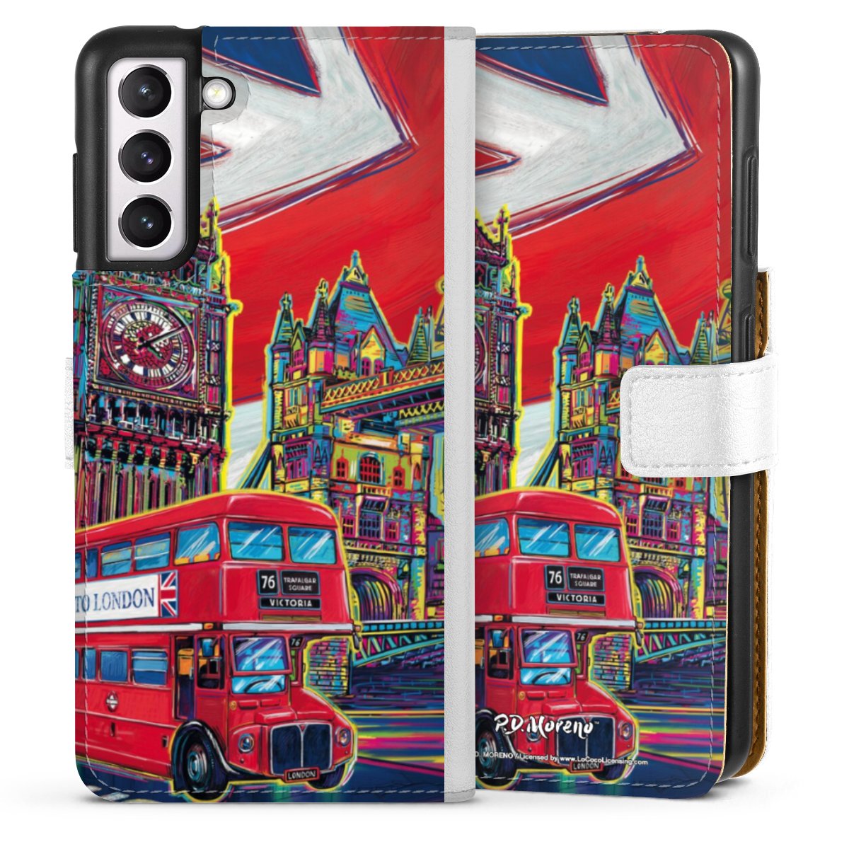 For our Sideflip Case we are using our advanced direct printing technology. The back and frontside are fully printabale, the inside of the phone bag is left unprinted. You can order the phone case without print, printed completely or also with a partial print.
