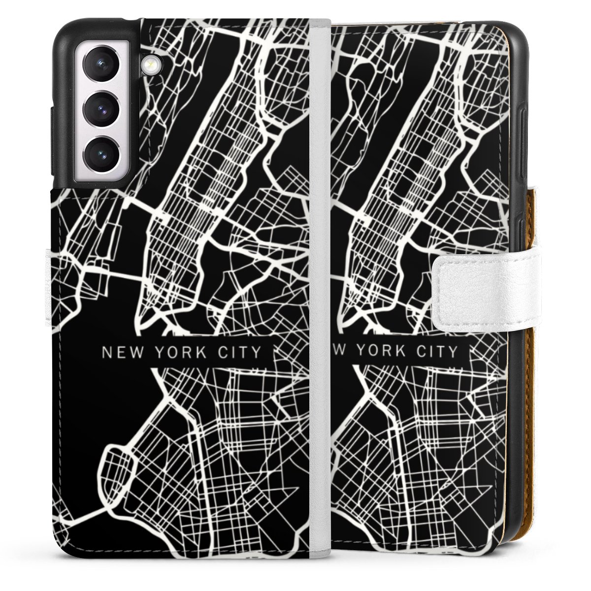 For our Sideflip Case we are using our advanced direct printing technology. The back and frontside are fully printabale, the inside of the phone bag is left unprinted. You can order the phone case without print, printed completely or also with a partial print.