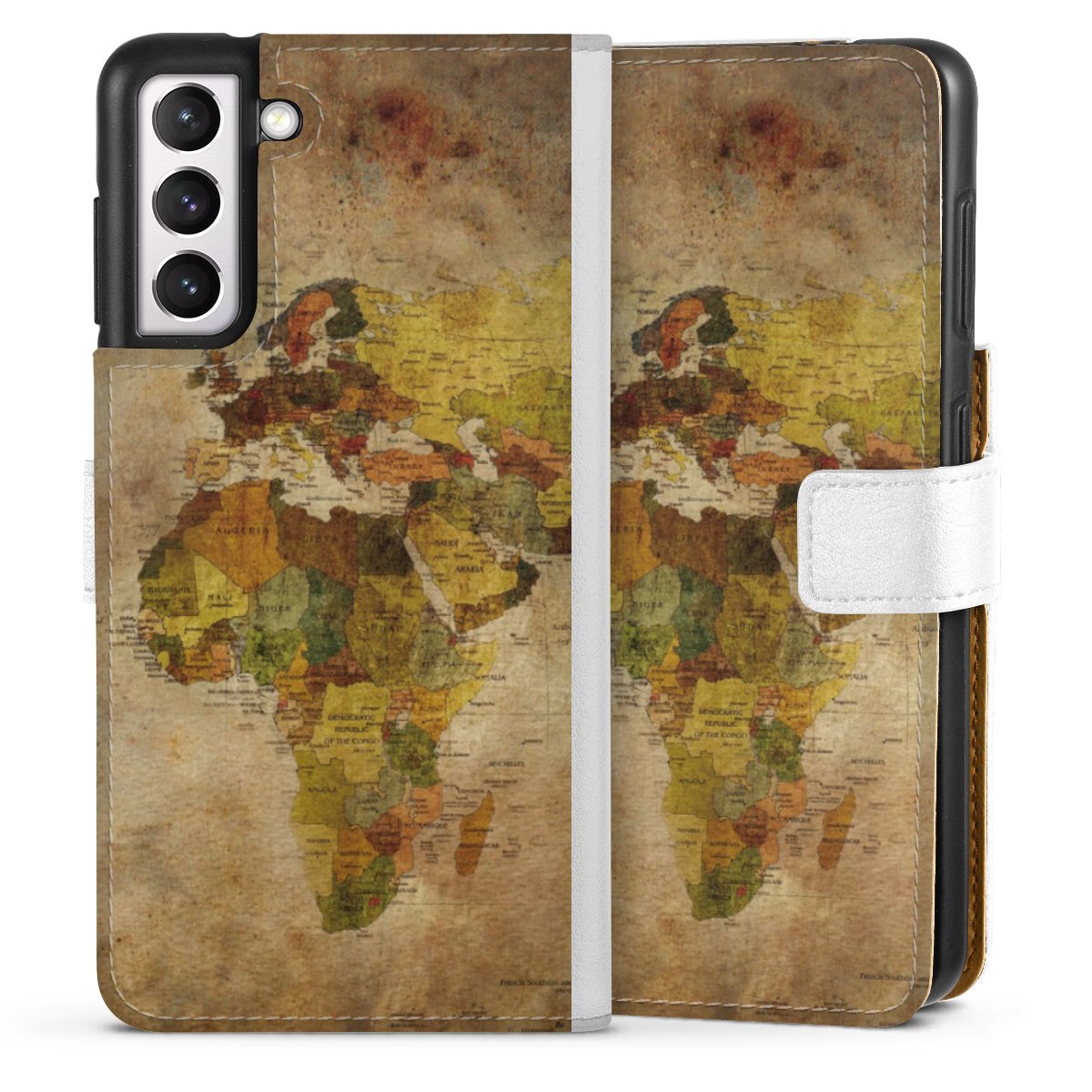 For our Sideflip Case we are using our advanced direct printing technology. The back and frontside are fully printabale, the inside of the phone bag is left unprinted. You can order the phone case without print, printed completely or also with a partial print.