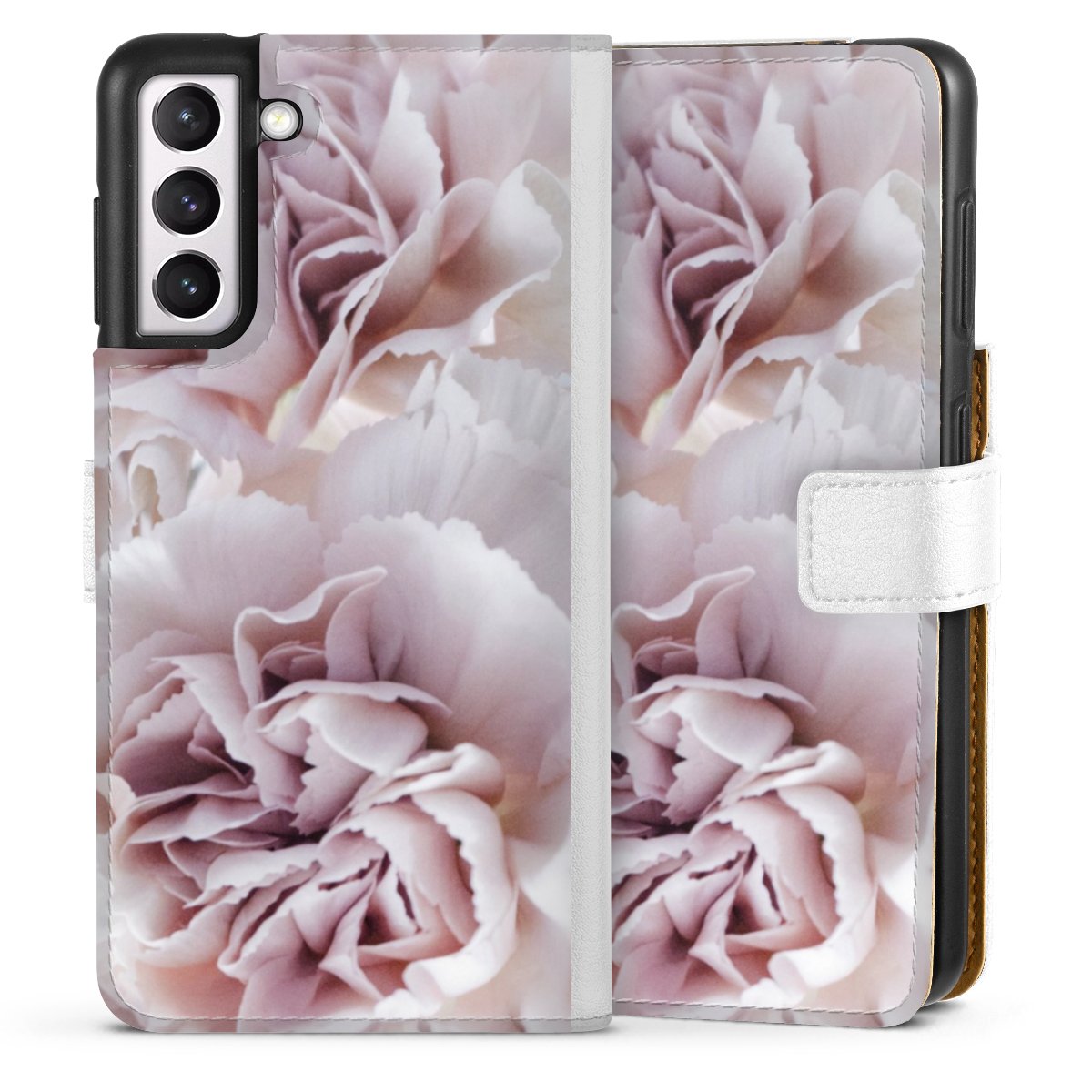 For our Sideflip Case we are using our advanced direct printing technology. The back and frontside are fully printabale, the inside of the phone bag is left unprinted. You can order the phone case without print, printed completely or also with a partial print.