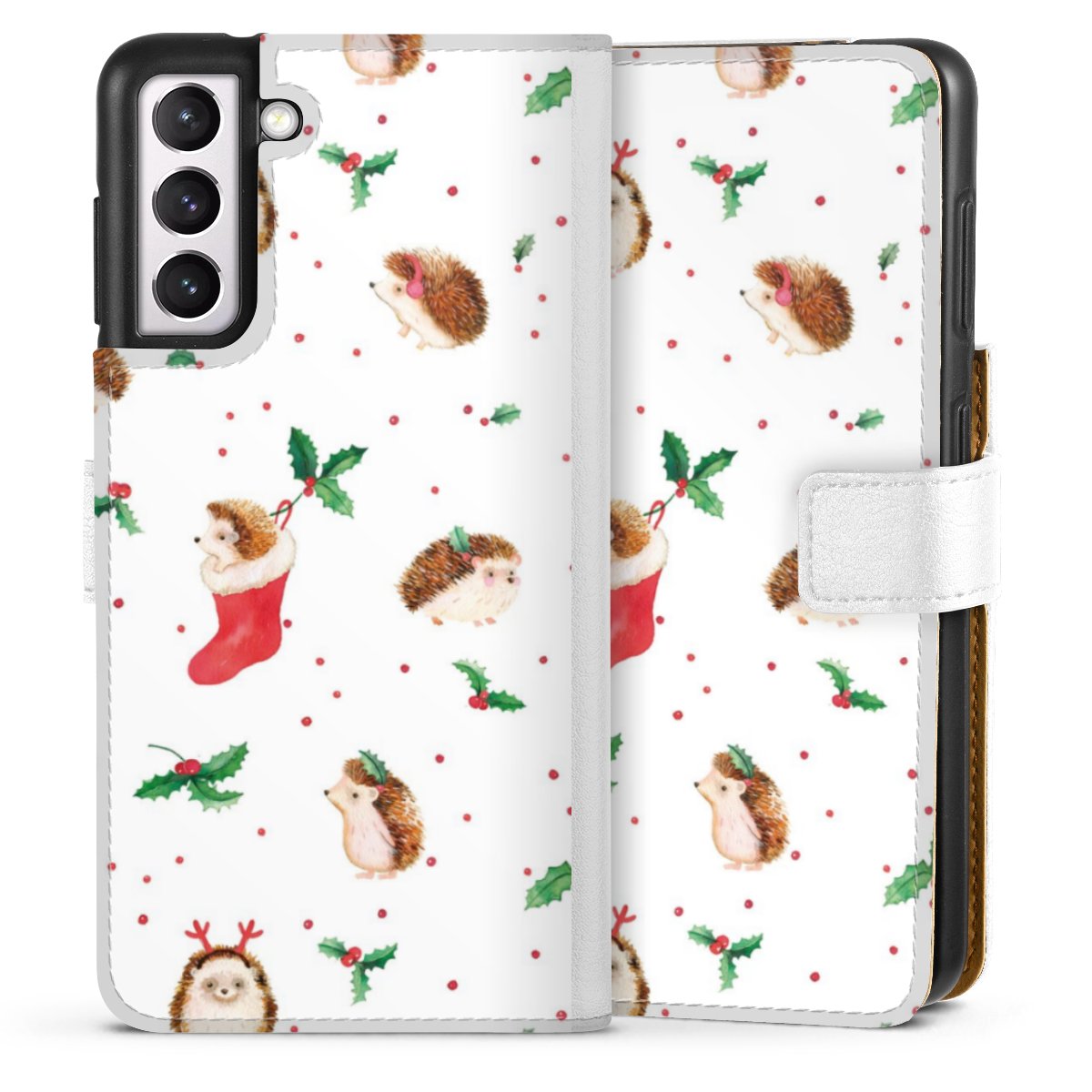 For our Sideflip Case we are using our advanced direct printing technology. The back and frontside are fully printabale, the inside of the phone bag is left unprinted. You can order the phone case without print, printed completely or also with a partial print.