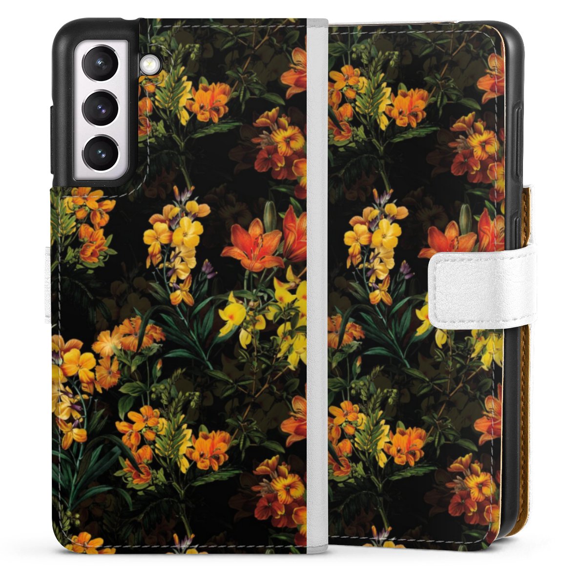For our Sideflip Case we are using our advanced direct printing technology. The back and frontside are fully printabale, the inside of the phone bag is left unprinted. You can order the phone case without print, printed completely or also with a partial print.