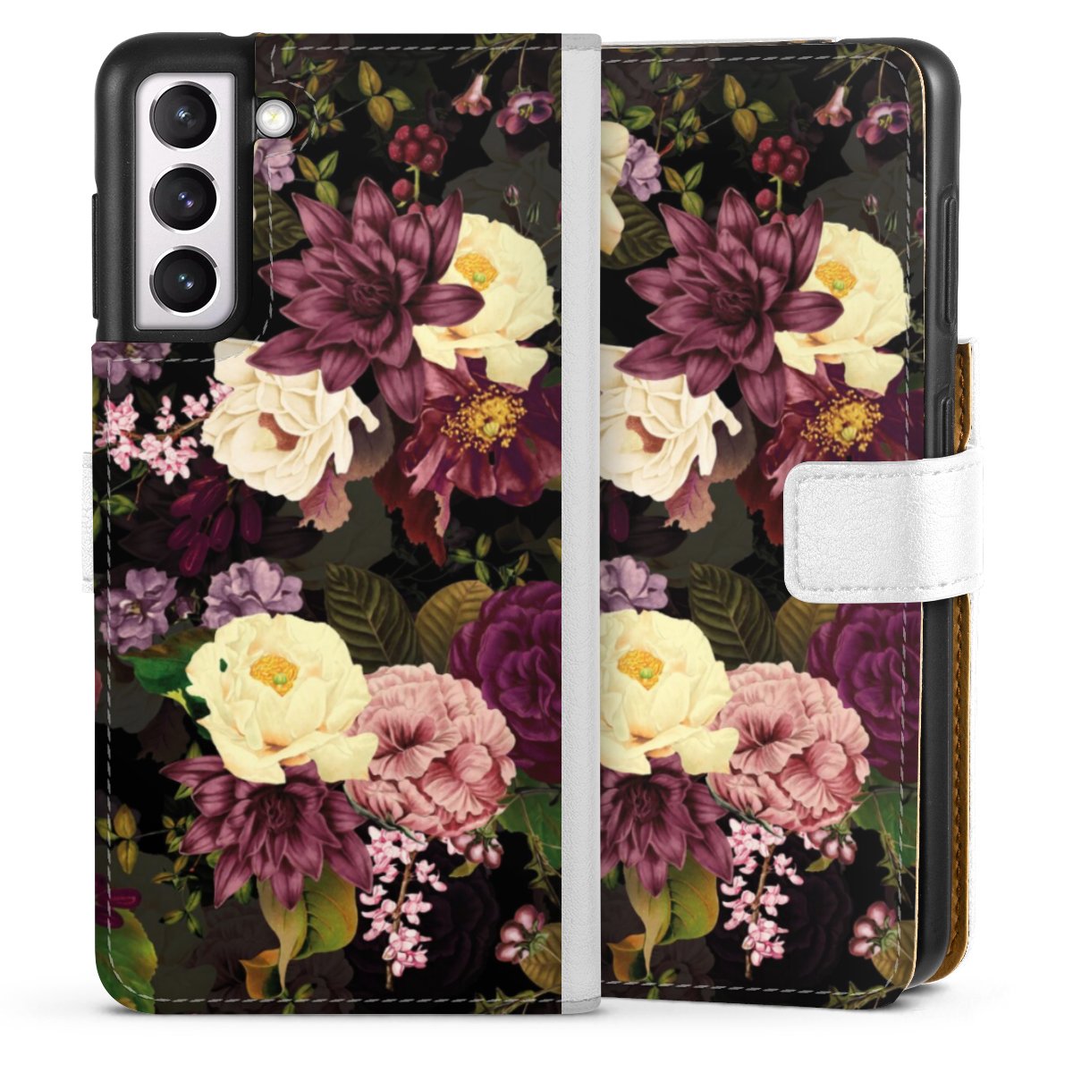 For our Sideflip Case we are using our advanced direct printing technology. The back and frontside are fully printabale, the inside of the phone bag is left unprinted. You can order the phone case without print, printed completely or also with a partial print.