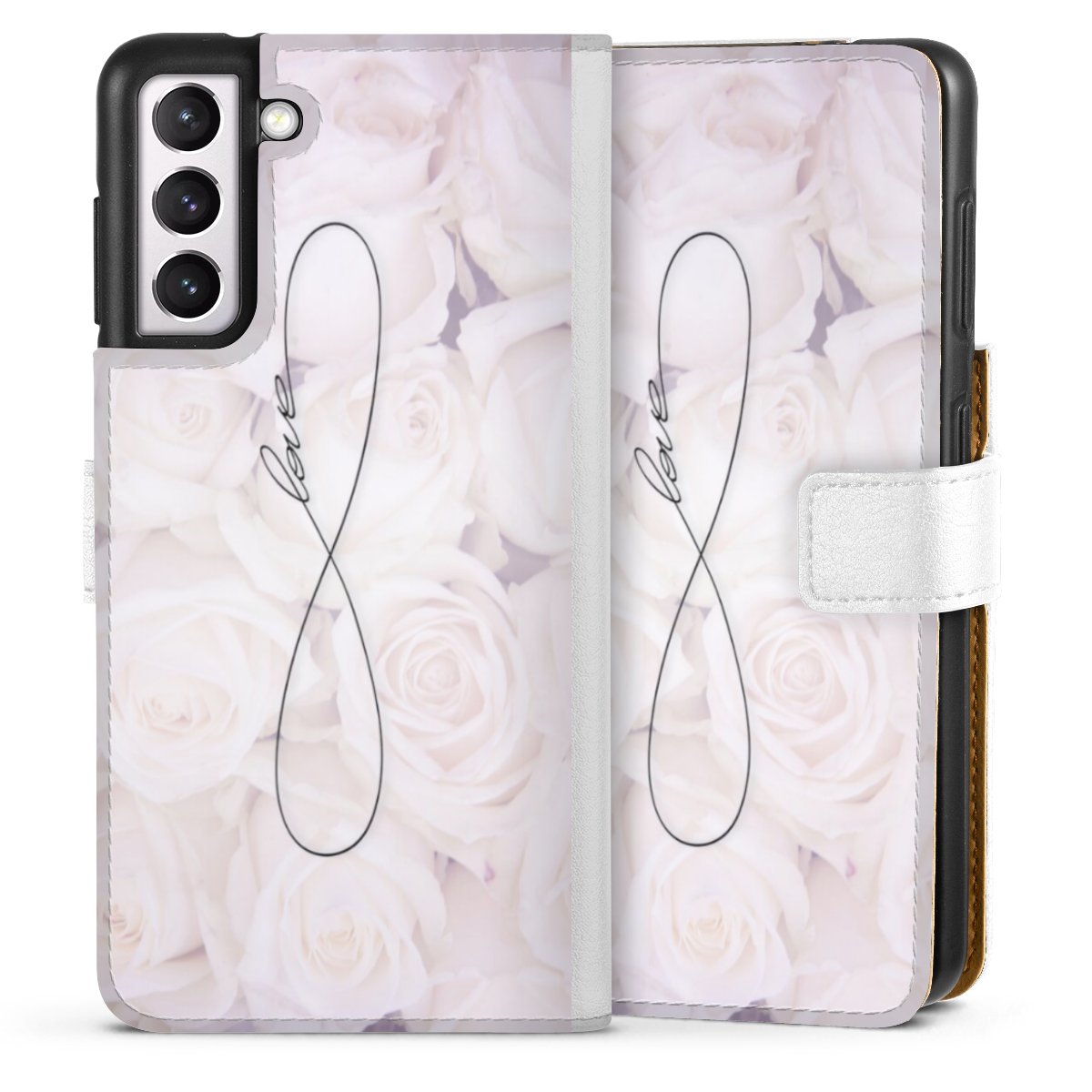 For our Sideflip Case we are using our advanced direct printing technology. The back and frontside are fully printabale, the inside of the phone bag is left unprinted. You can order the phone case without print, printed completely or also with a partial print.