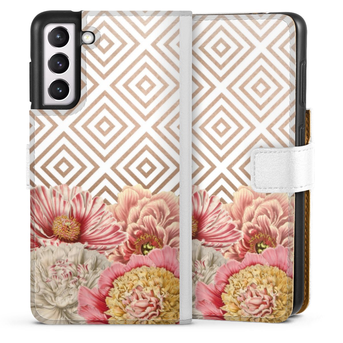 For our Sideflip Case we are using our advanced direct printing technology. The back and frontside are fully printabale, the inside of the phone bag is left unprinted. You can order the phone case without print, printed completely or also with a partial print.