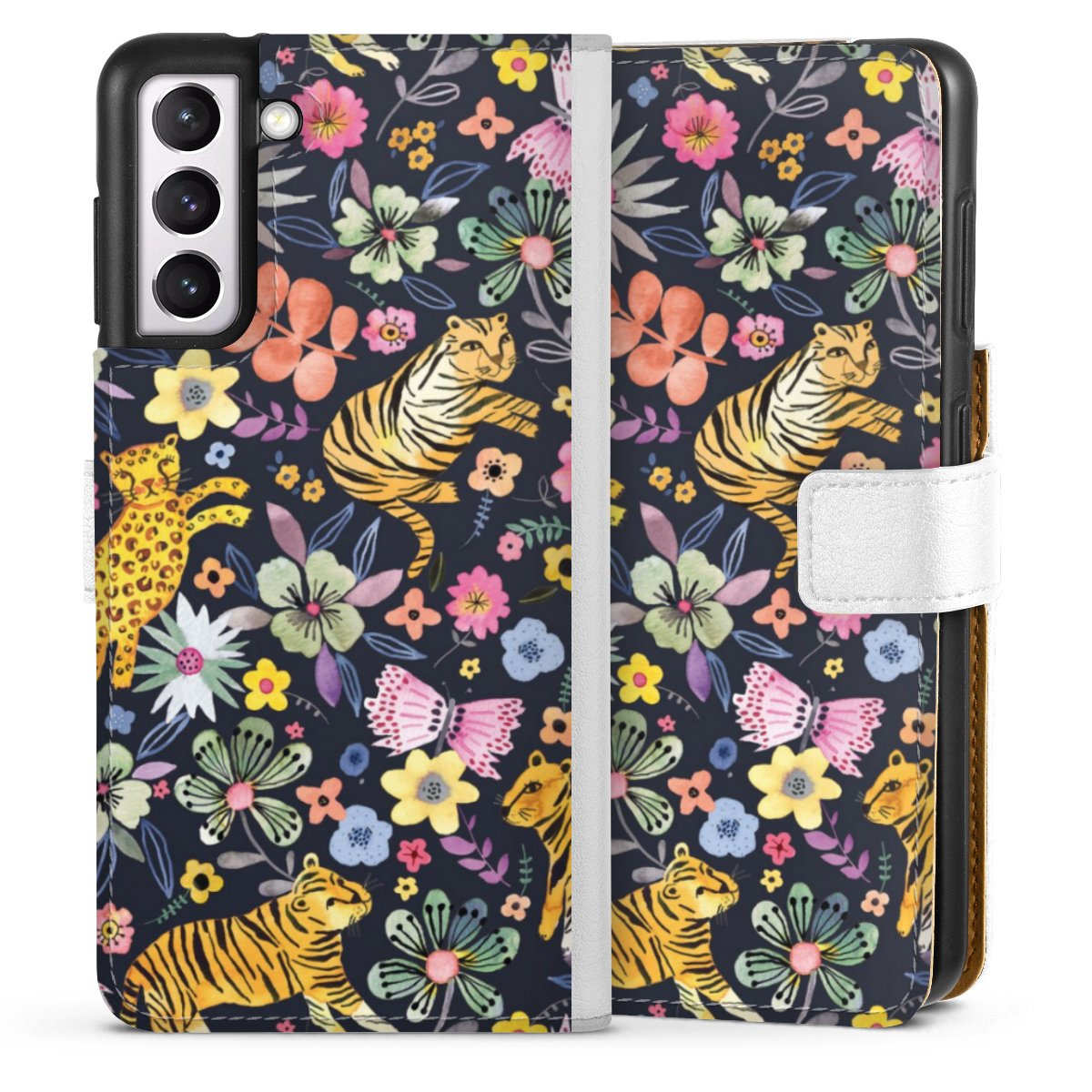 For our Sideflip Case we are using our advanced direct printing technology. The back and frontside are fully printabale, the inside of the phone bag is left unprinted. You can order the phone case without print, printed completely or also with a partial print.