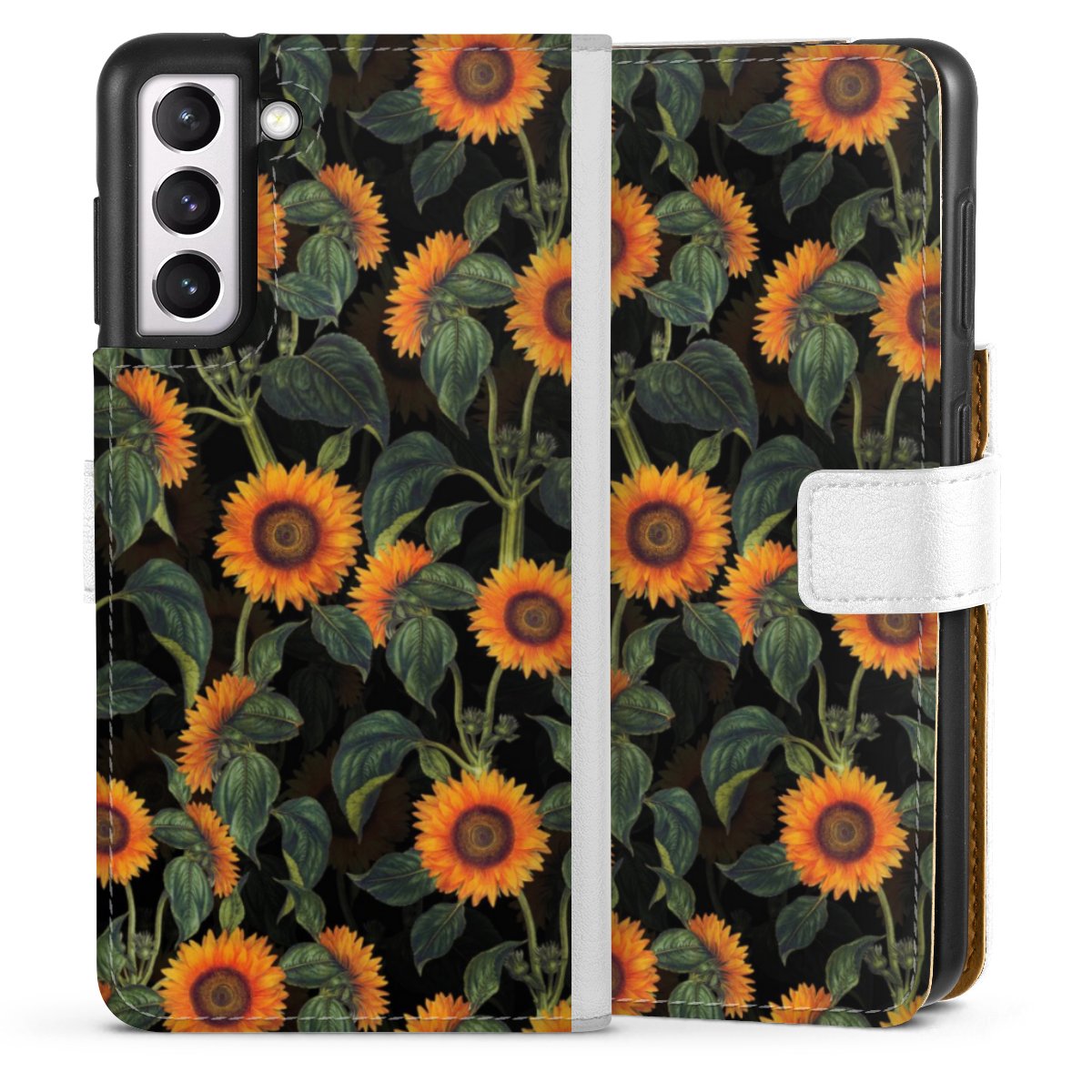 For our Sideflip Case we are using our advanced direct printing technology. The back and frontside are fully printabale, the inside of the phone bag is left unprinted. You can order the phone case without print, printed completely or also with a partial print.