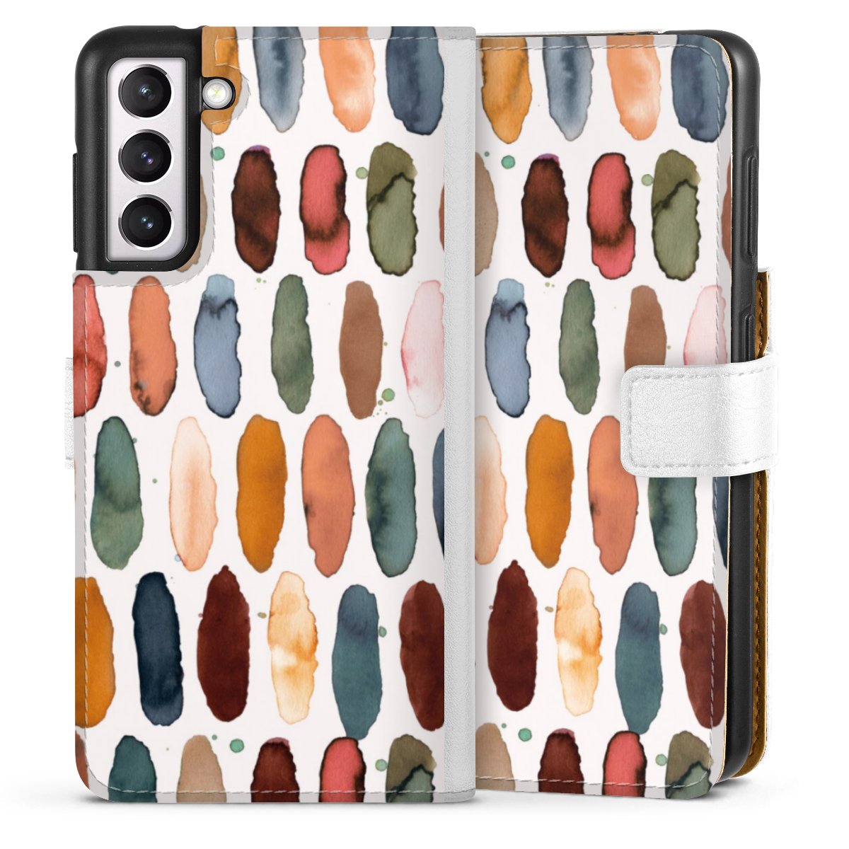 For our Sideflip Case we are using our advanced direct printing technology. The back and frontside are fully printabale, the inside of the phone bag is left unprinted. You can order the phone case without print, printed completely or also with a partial print.