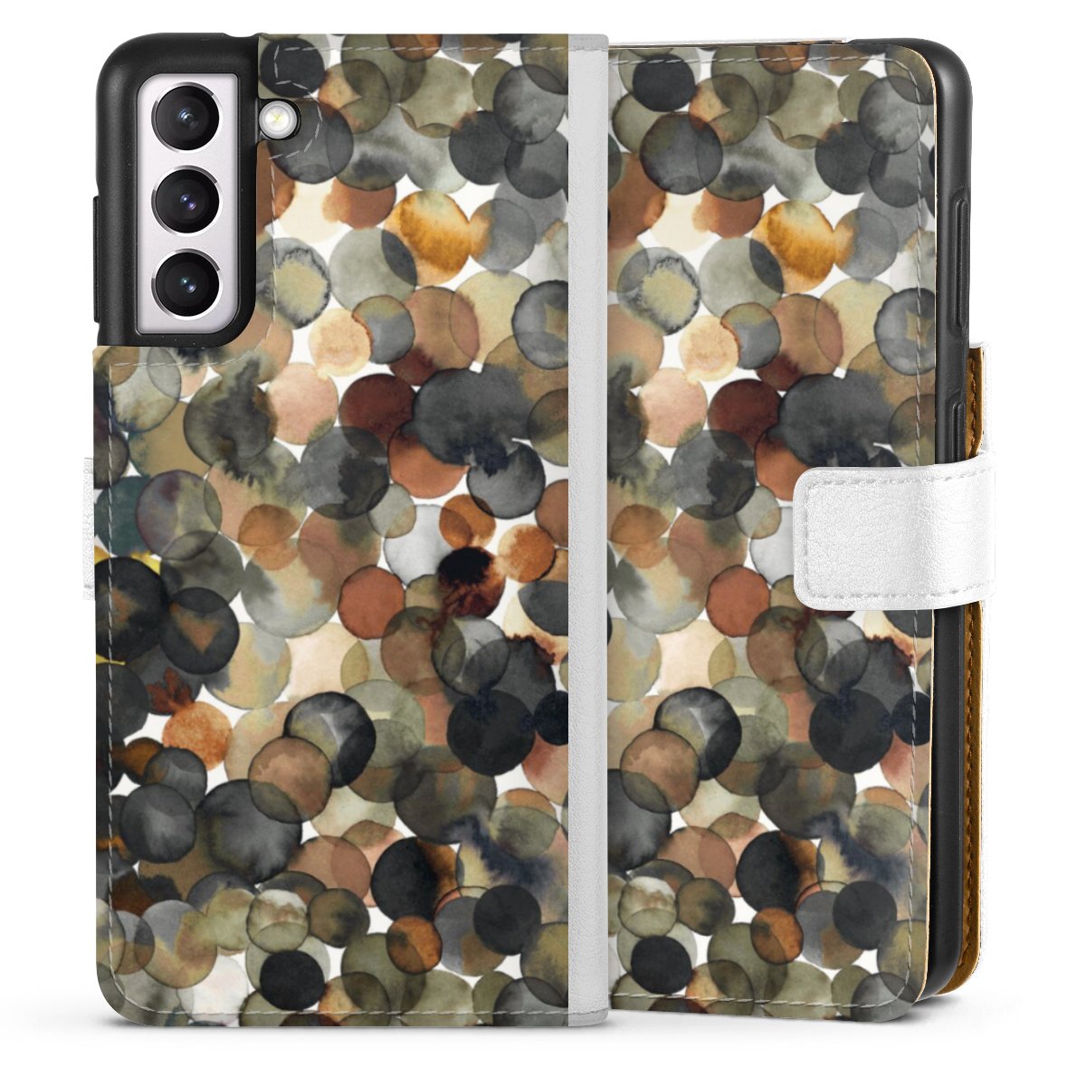 For our Sideflip Case we are using our advanced direct printing technology. The back and frontside are fully printabale, the inside of the phone bag is left unprinted. You can order the phone case without print, printed completely or also with a partial print.