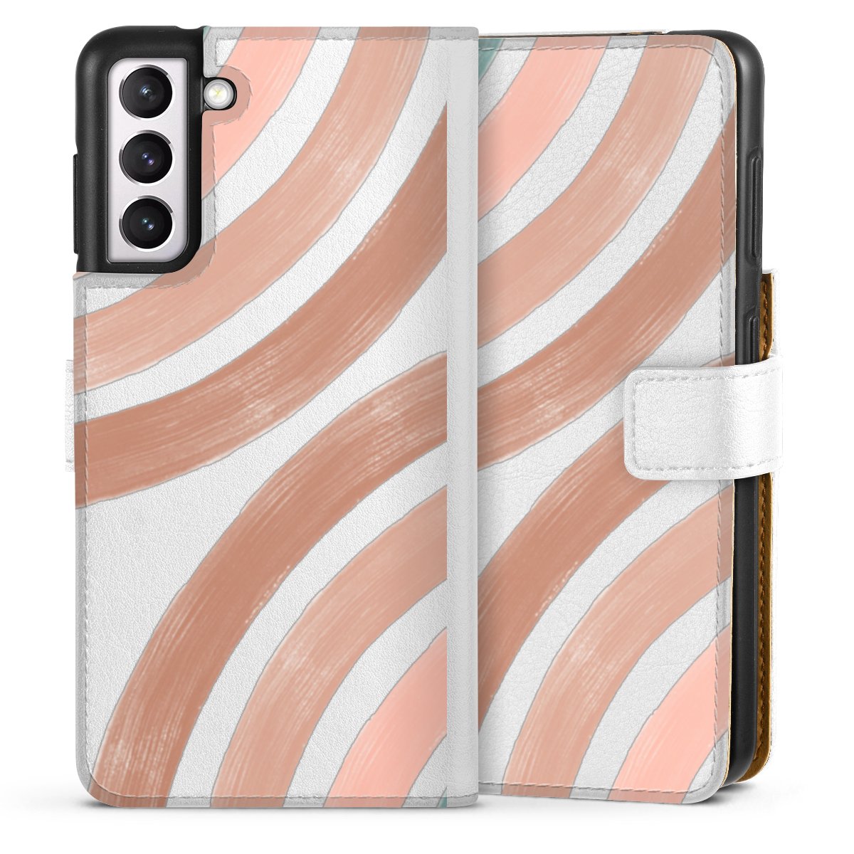 For our Sideflip Case we are using our advanced direct printing technology. The back and frontside are fully printabale, the inside of the phone bag is left unprinted. You can order the phone case without print, printed completely or also with a partial print.