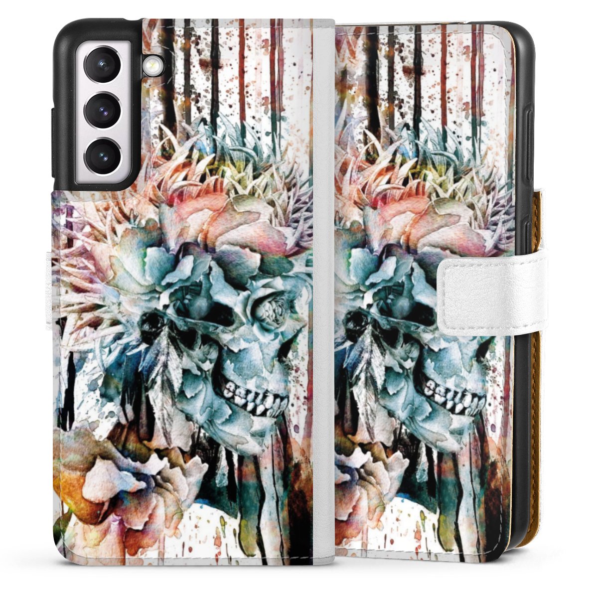 For our Sideflip Case we are using our advanced direct printing technology. The back and frontside are fully printabale, the inside of the phone bag is left unprinted. You can order the phone case without print, printed completely or also with a partial print.