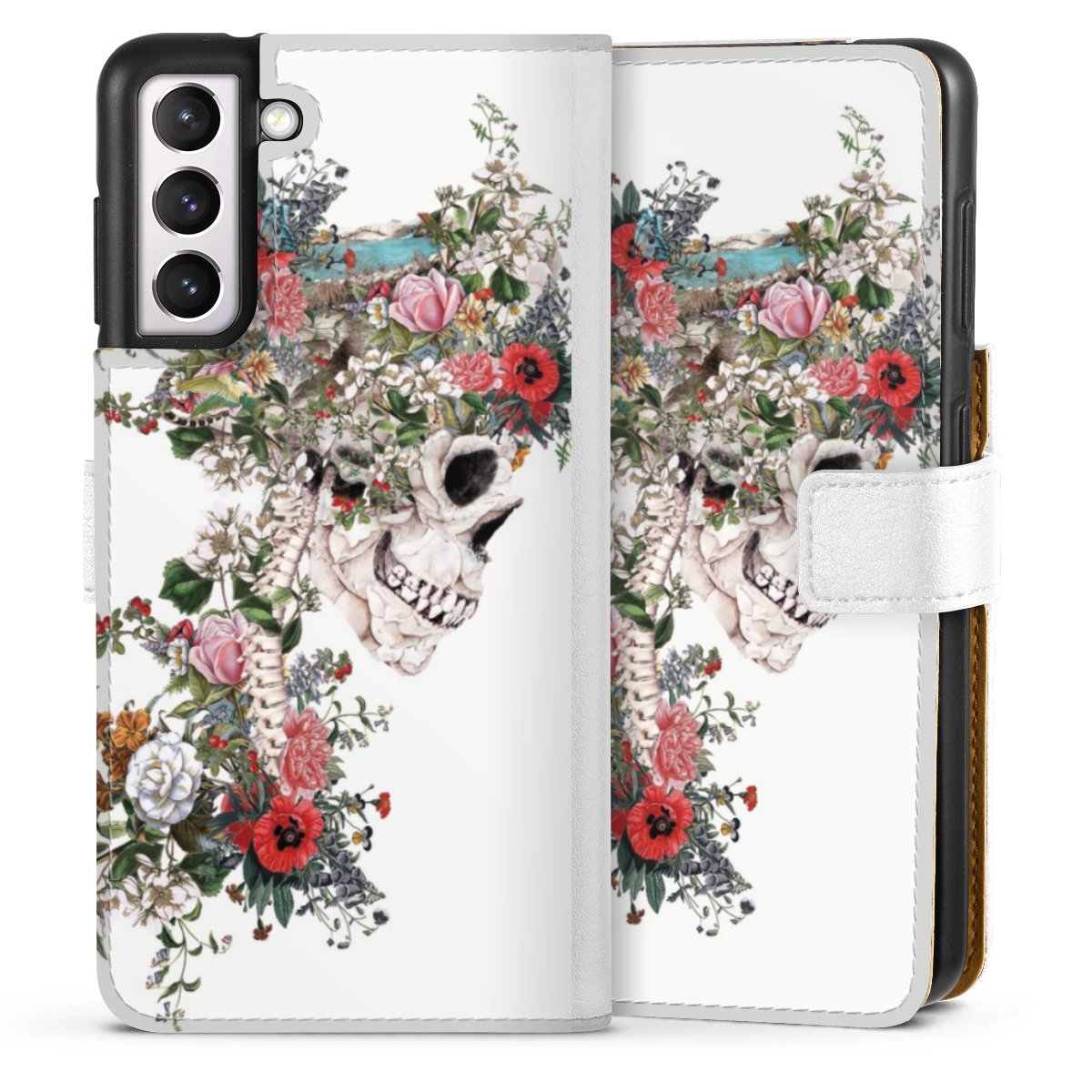 For our Sideflip Case we are using our advanced direct printing technology. The back and frontside are fully printabale, the inside of the phone bag is left unprinted. You can order the phone case without print, printed completely or also with a partial print.