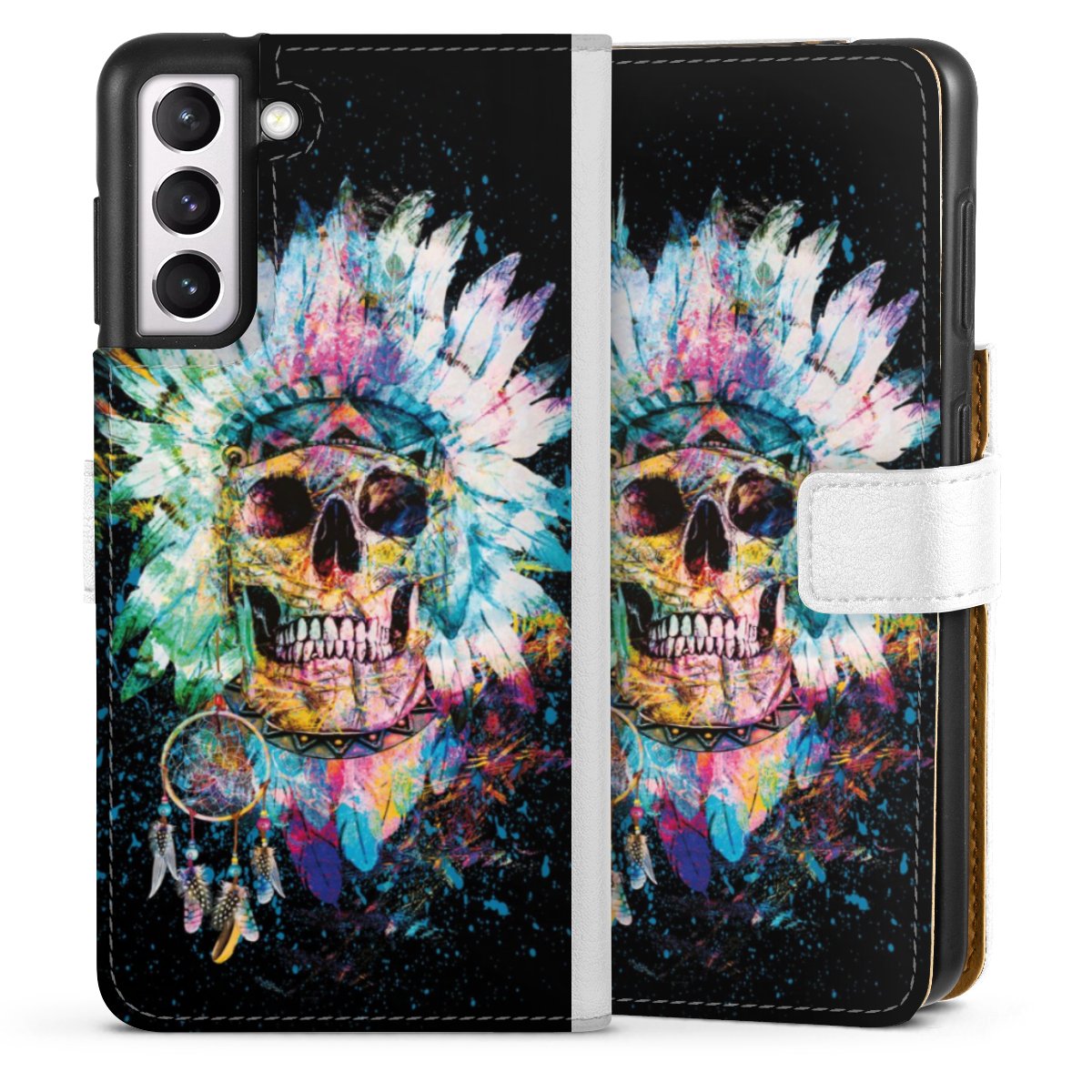 For our Sideflip Case we are using our advanced direct printing technology. The back and frontside are fully printabale, the inside of the phone bag is left unprinted. You can order the phone case without print, printed completely or also with a partial print.