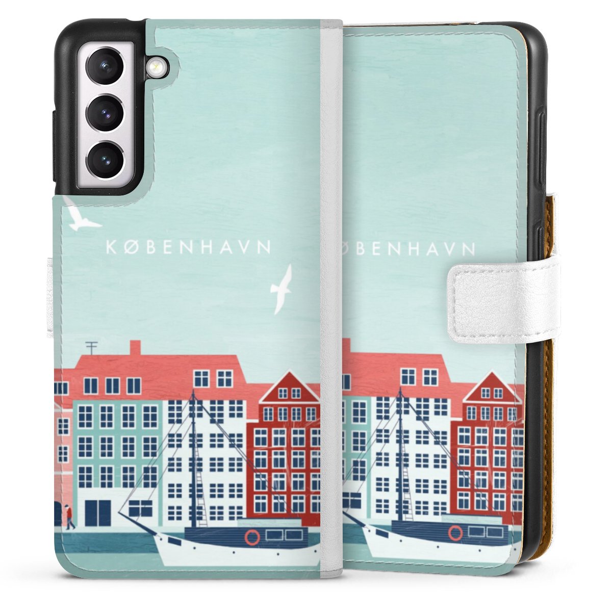 For our Sideflip Case we are using our advanced direct printing technology. The back and frontside are fully printabale, the inside of the phone bag is left unprinted. You can order the phone case without print, printed completely or also with a partial print.