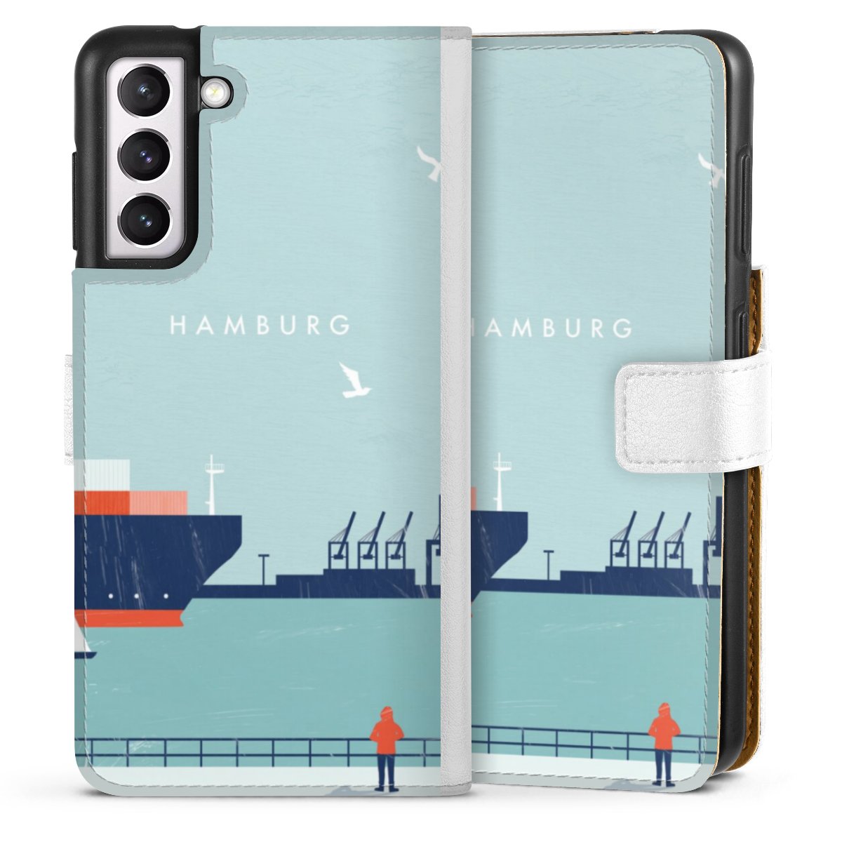 For our Sideflip Case we are using our advanced direct printing technology. The back and frontside are fully printabale, the inside of the phone bag is left unprinted. You can order the phone case without print, printed completely or also with a partial print.
