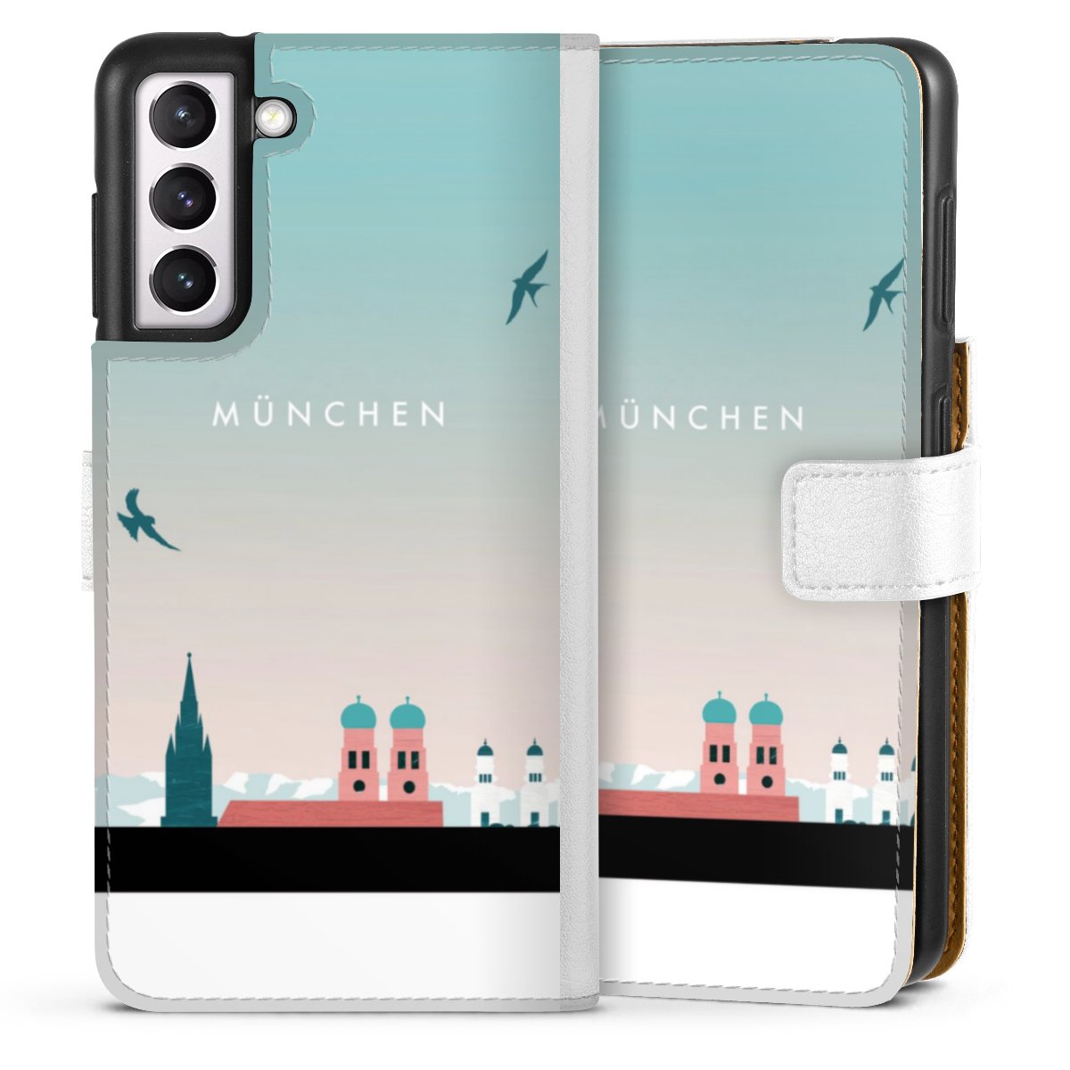 For our Sideflip Case we are using our advanced direct printing technology. The back and frontside are fully printabale, the inside of the phone bag is left unprinted. You can order the phone case without print, printed completely or also with a partial print.