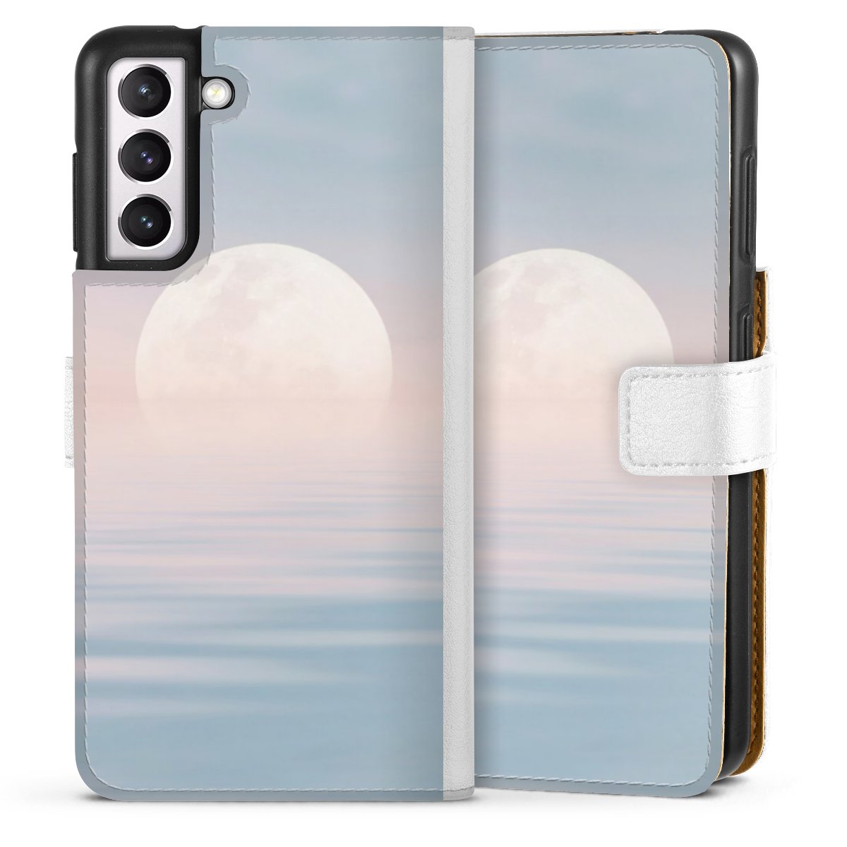For our Sideflip Case we are using our advanced direct printing technology. The back and frontside are fully printabale, the inside of the phone bag is left unprinted. You can order the phone case without print, printed completely or also with a partial print.