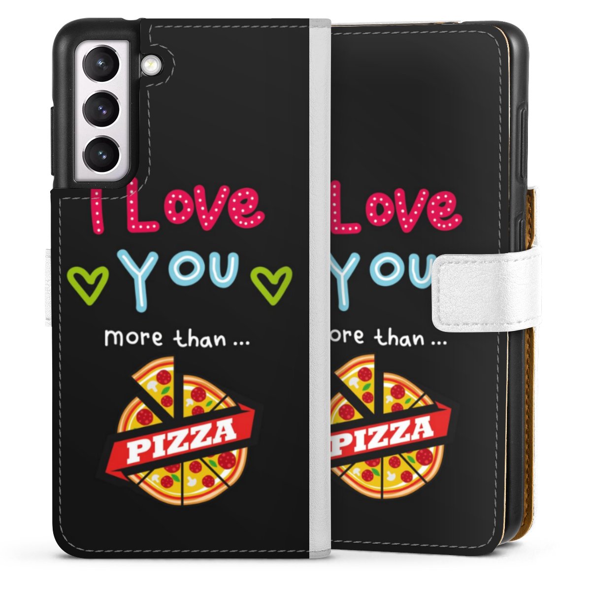 For our Sideflip Case we are using our advanced direct printing technology. The back and frontside are fully printabale, the inside of the phone bag is left unprinted. You can order the phone case without print, printed completely or also with a partial print.