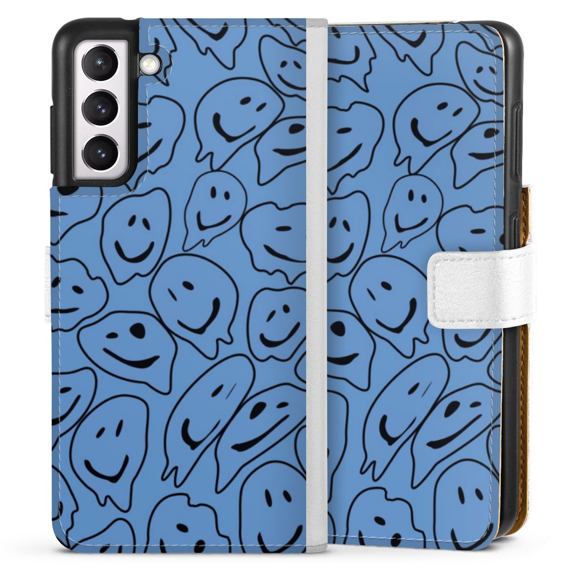 For our Sideflip Case we are using our advanced direct printing technology. The back and frontside are fully printabale, the inside of the phone bag is left unprinted. You can order the phone case without print, printed completely or also with a partial print.