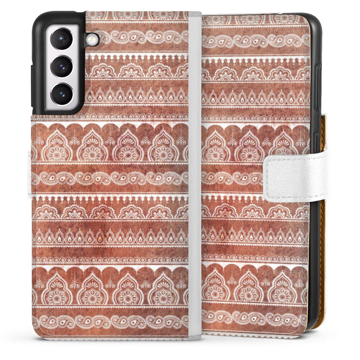For our Sideflip Case we are using our advanced direct printing technology. The back and frontside are fully printabale, the inside of the phone bag is left unprinted. You can order the phone case without print, printed completely or also with a partial print.