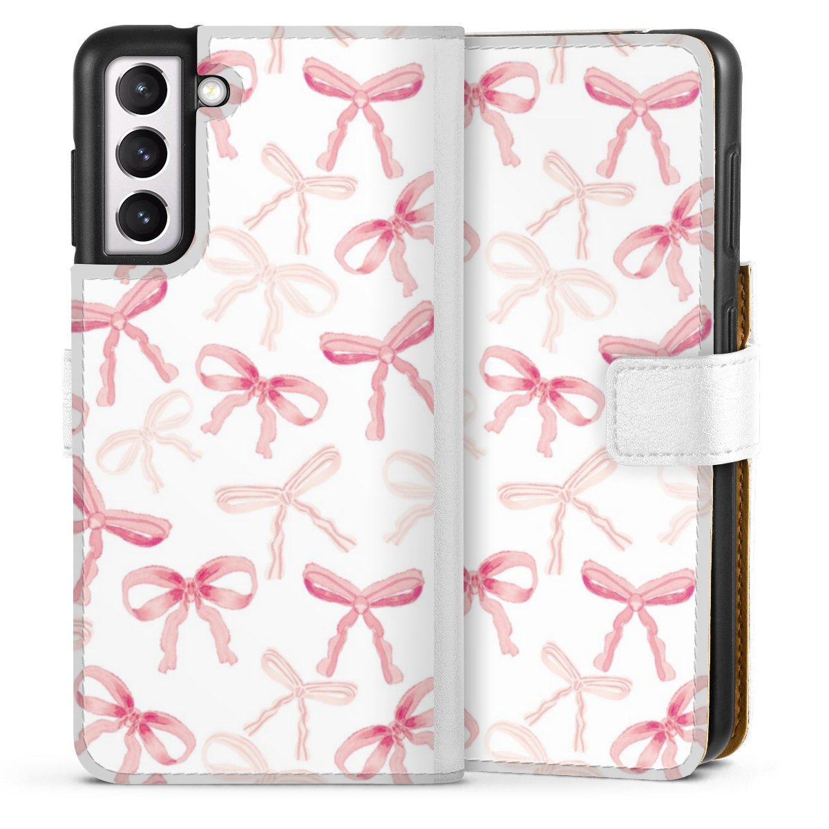 For our Sideflip Case we are using our advanced direct printing technology. The back and frontside are fully printabale, the inside of the phone bag is left unprinted. You can order the phone case without print, printed completely or also with a partial print.