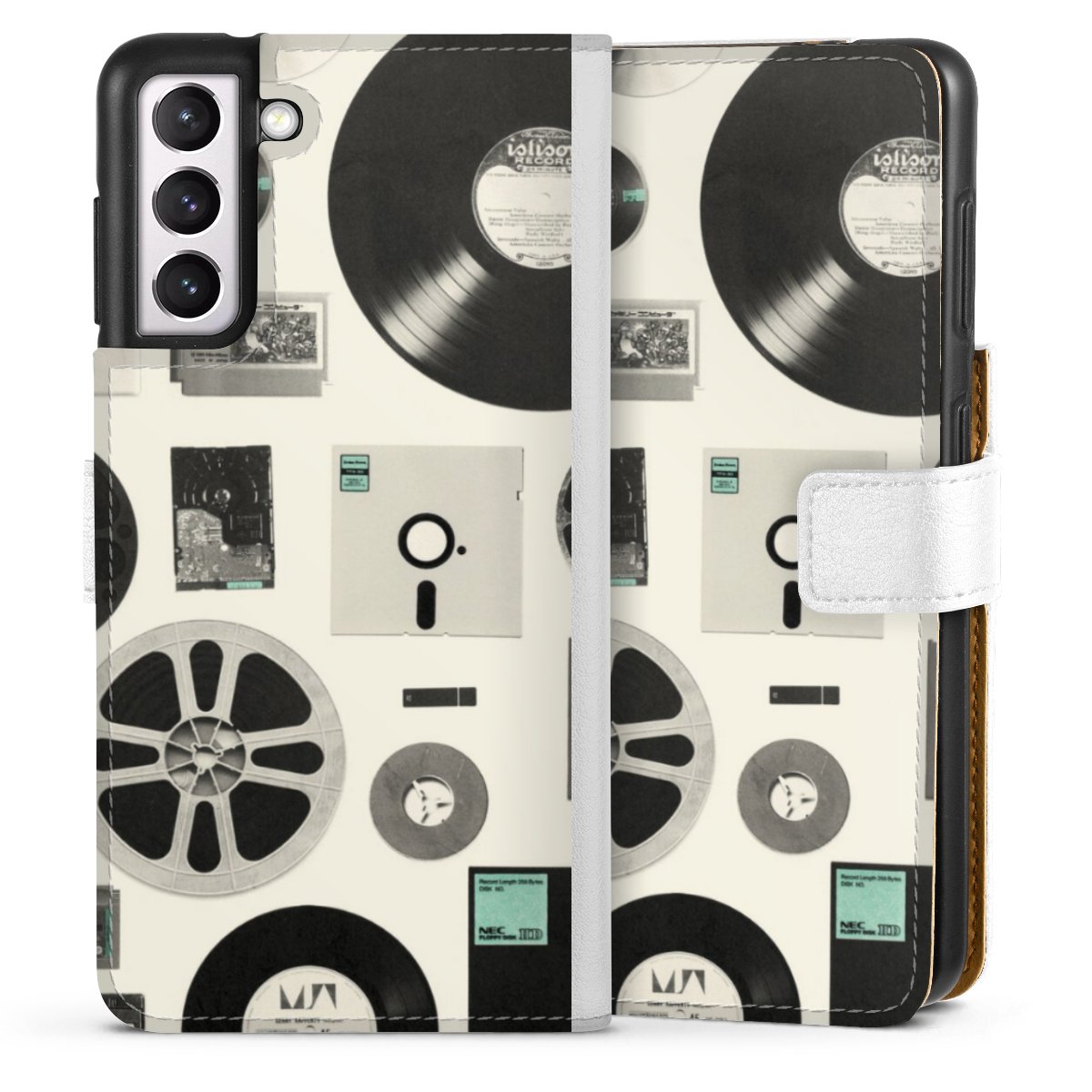 For our Sideflip Case we are using our advanced direct printing technology. The back and frontside are fully printabale, the inside of the phone bag is left unprinted. You can order the phone case without print, printed completely or also with a partial print.