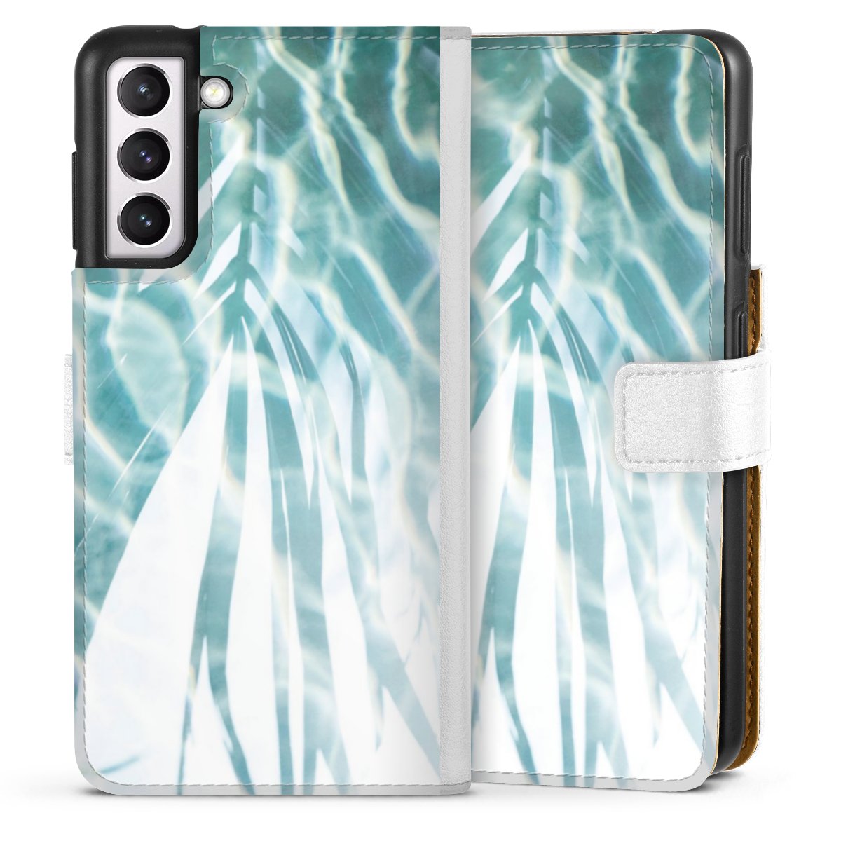 For our Sideflip Case we are using our advanced direct printing technology. The back and frontside are fully printabale, the inside of the phone bag is left unprinted. You can order the phone case without print, printed completely or also with a partial print.