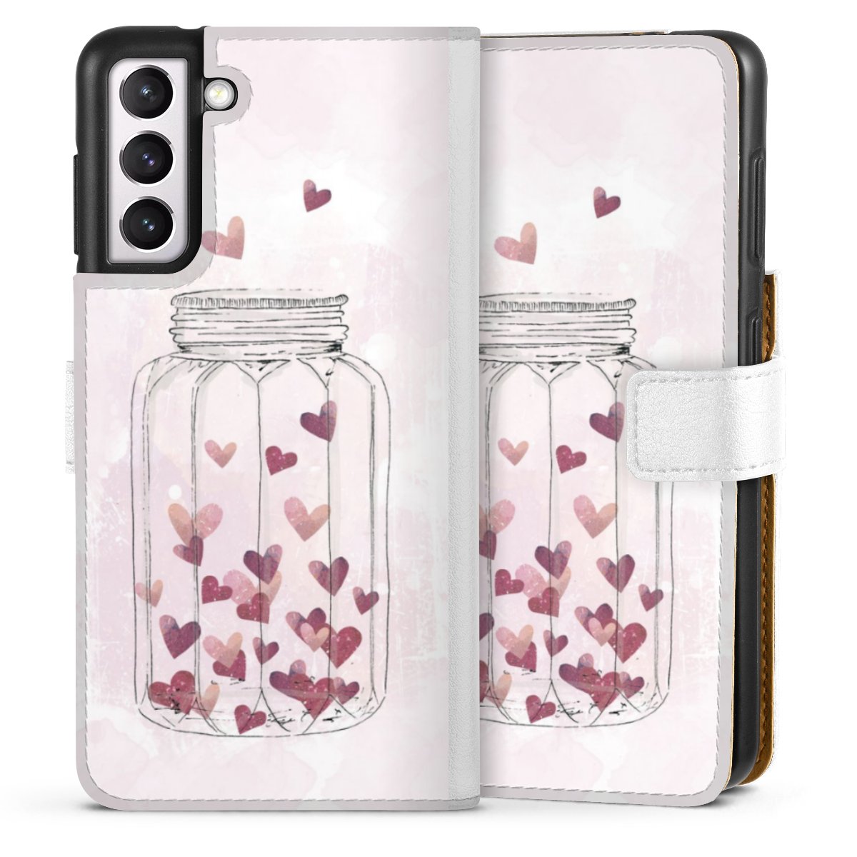 For our Sideflip Case we are using our advanced direct printing technology. The back and frontside are fully printabale, the inside of the phone bag is left unprinted. You can order the phone case without print, printed completely or also with a partial print.