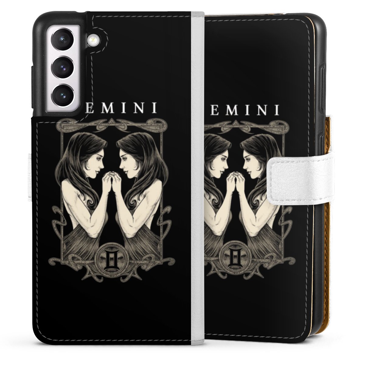 For our Sideflip Case we are using our advanced direct printing technology. The back and frontside are fully printabale, the inside of the phone bag is left unprinted. You can order the phone case without print, printed completely or also with a partial print.
