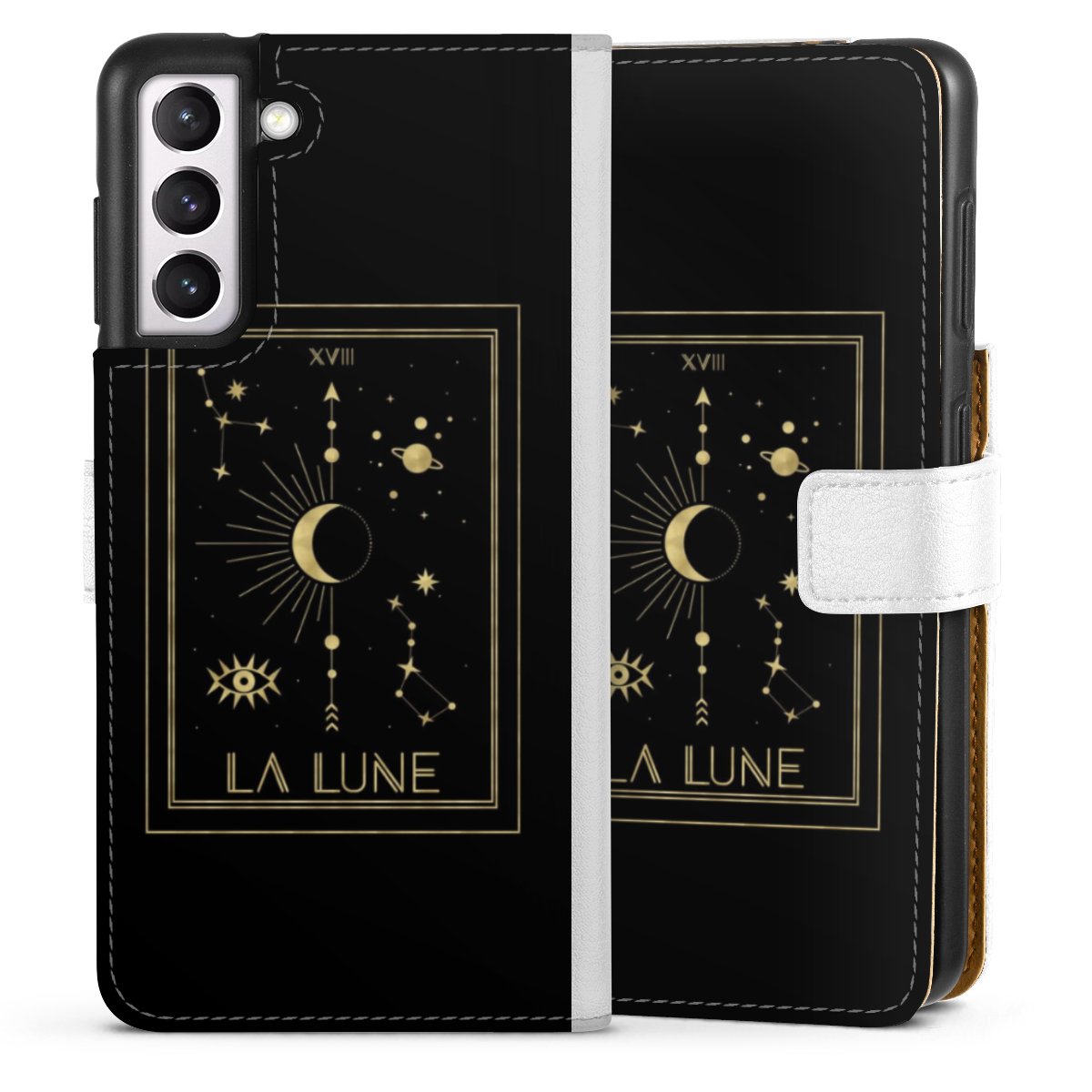 For our Sideflip Case we are using our advanced direct printing technology. The back and frontside are fully printabale, the inside of the phone bag is left unprinted. You can order the phone case without print, printed completely or also with a partial print.