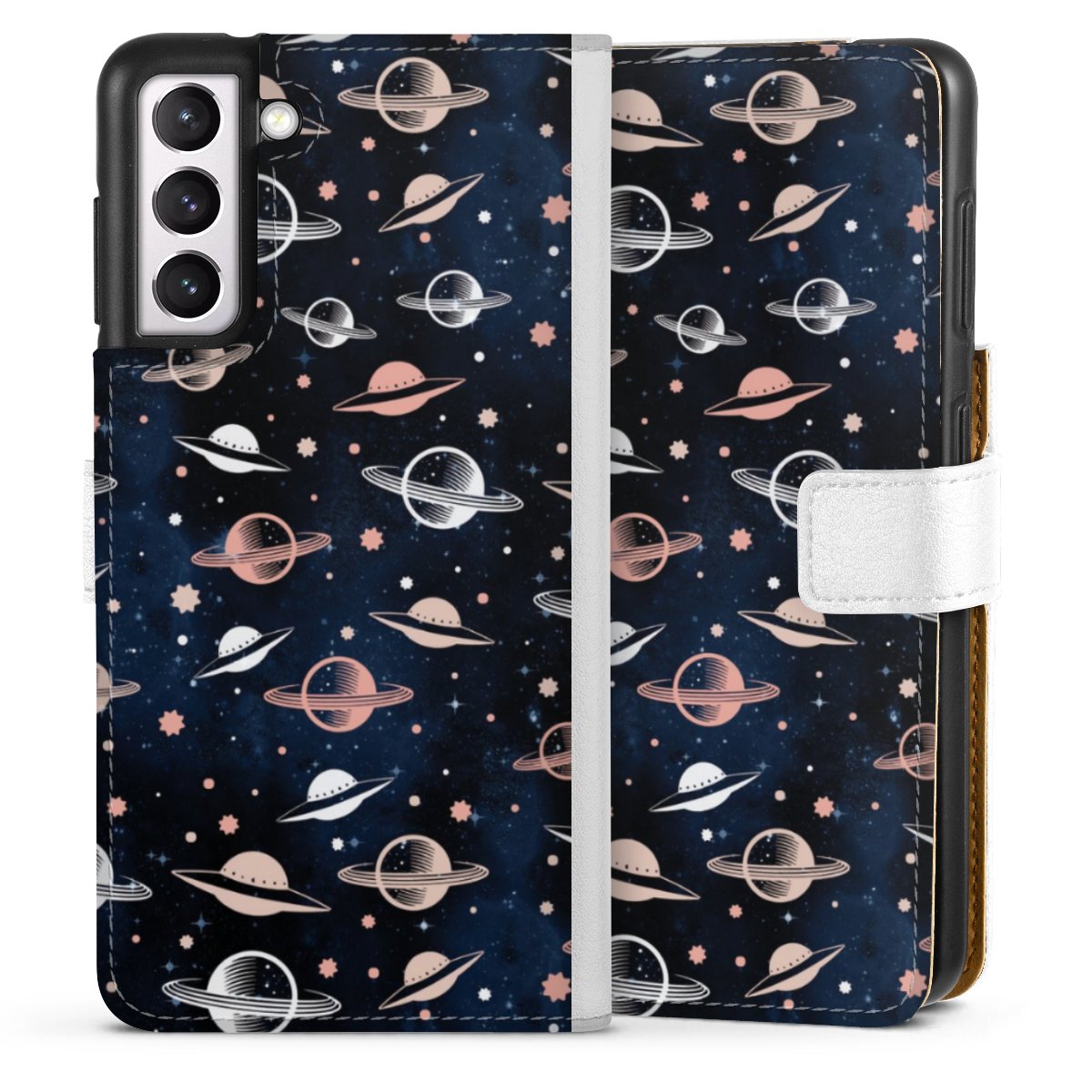 For our Sideflip Case we are using our advanced direct printing technology. The back and frontside are fully printabale, the inside of the phone bag is left unprinted. You can order the phone case without print, printed completely or also with a partial print.