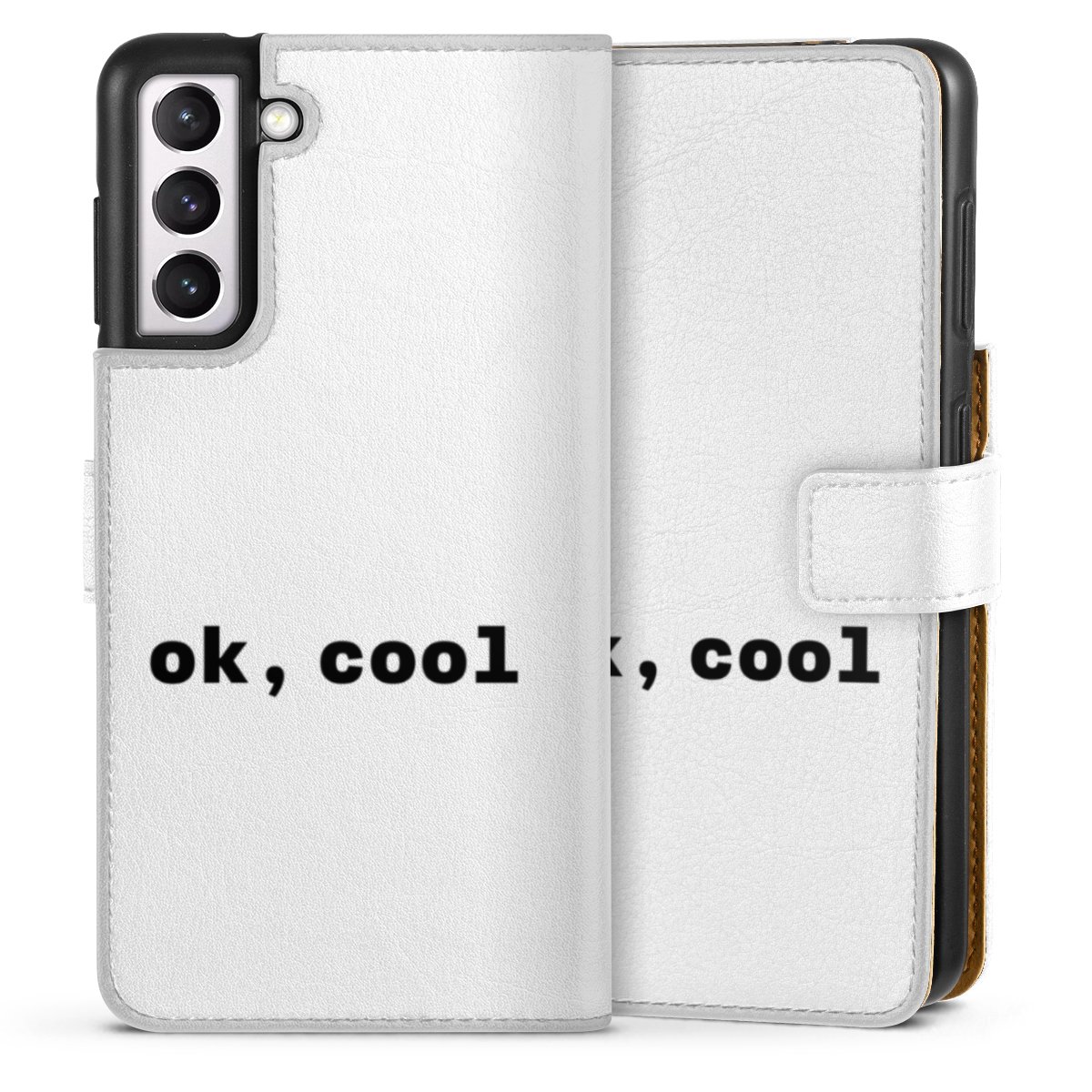 For our Sideflip Case we are using our advanced direct printing technology. The back and frontside are fully printabale, the inside of the phone bag is left unprinted. You can order the phone case without print, printed completely or also with a partial print.