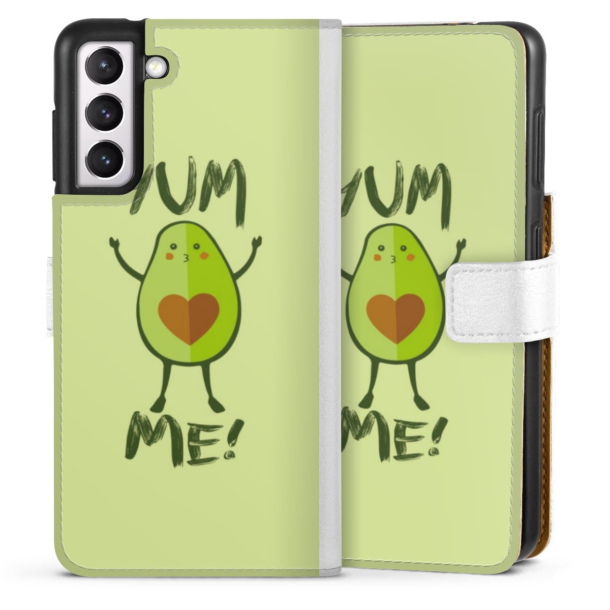 For our Sideflip Case we are using our advanced direct printing technology. The back and frontside are fully printabale, the inside of the phone bag is left unprinted. You can order the phone case without print, printed completely or also with a partial print.