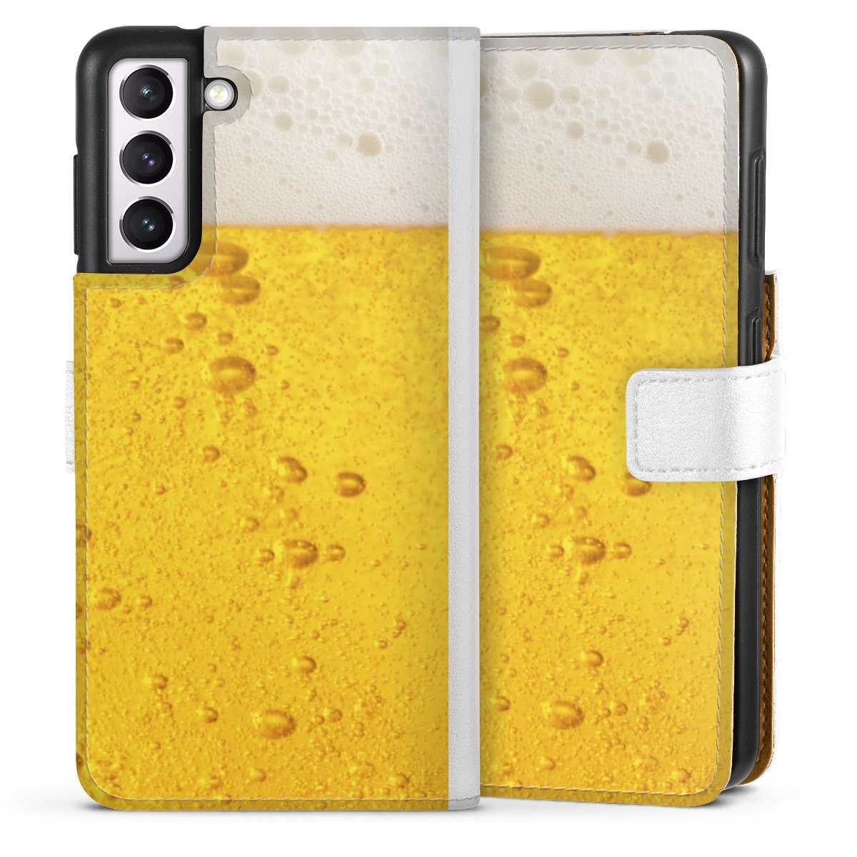 For our Sideflip Case we are using our advanced direct printing technology. The back and frontside are fully printabale, the inside of the phone bag is left unprinted. You can order the phone case without print, printed completely or also with a partial print.