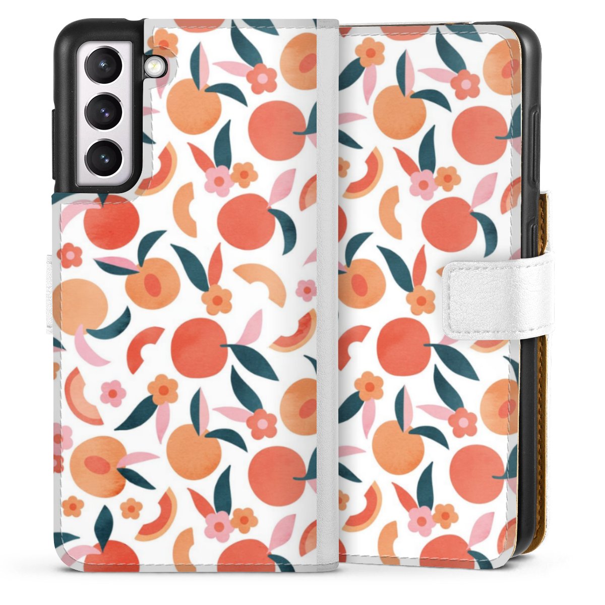 For our Sideflip Case we are using our advanced direct printing technology. The back and frontside are fully printabale, the inside of the phone bag is left unprinted. You can order the phone case without print, printed completely or also with a partial print.