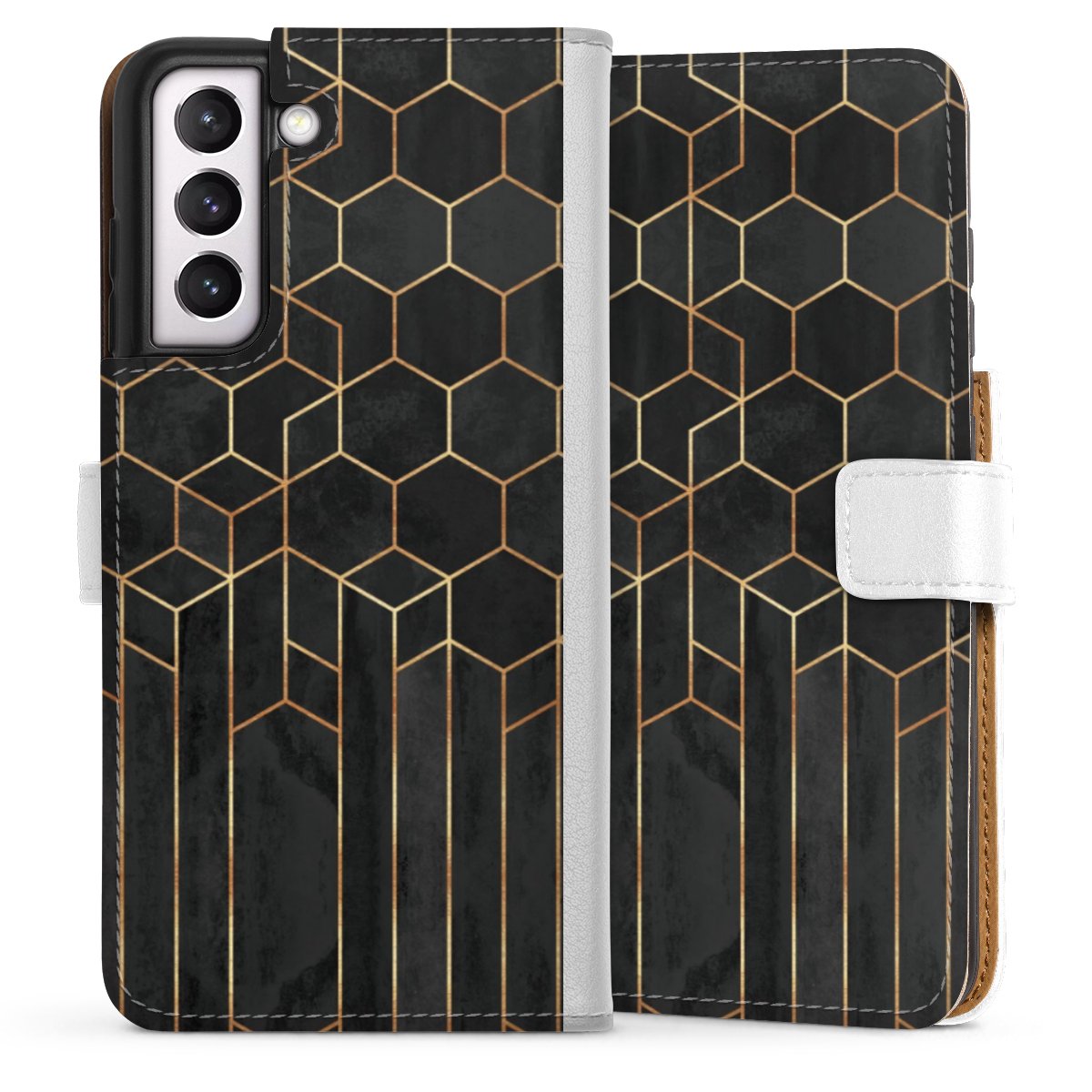 For our Sideflip Case we are using our advanced direct printing technology. The back and frontside are fully printabale, the inside of the phone bag is left unprinted. You can order the phone case without print, printed completely or also with a partial print.