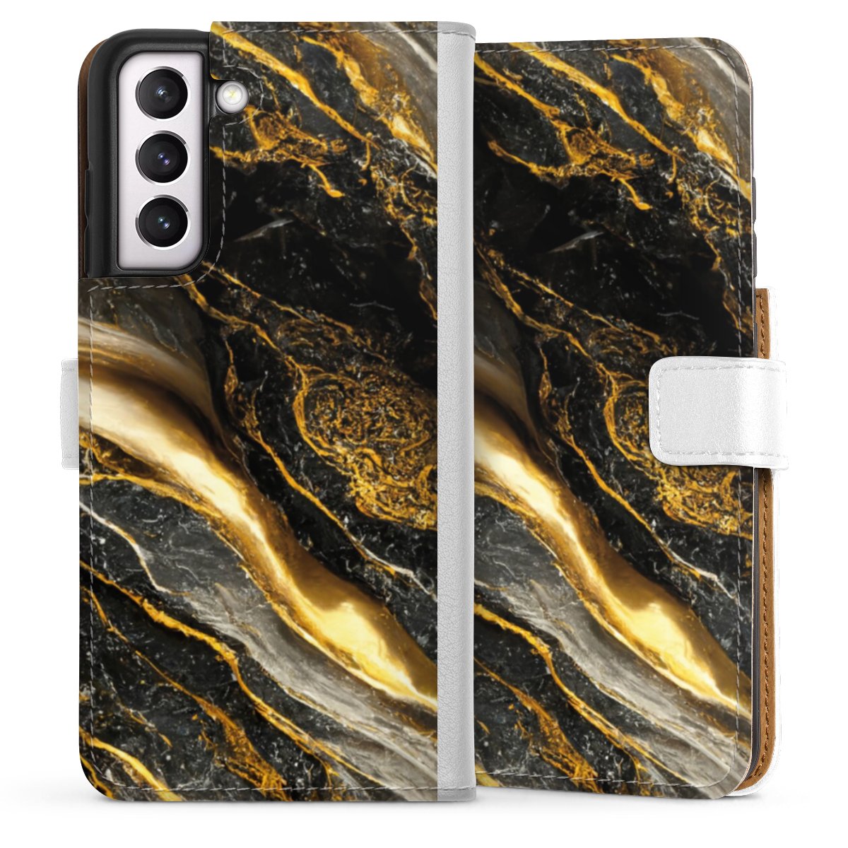 For our Sideflip Case we are using our advanced direct printing technology. The back and frontside are fully printabale, the inside of the phone bag is left unprinted. You can order the phone case without print, printed completely or also with a partial print.
