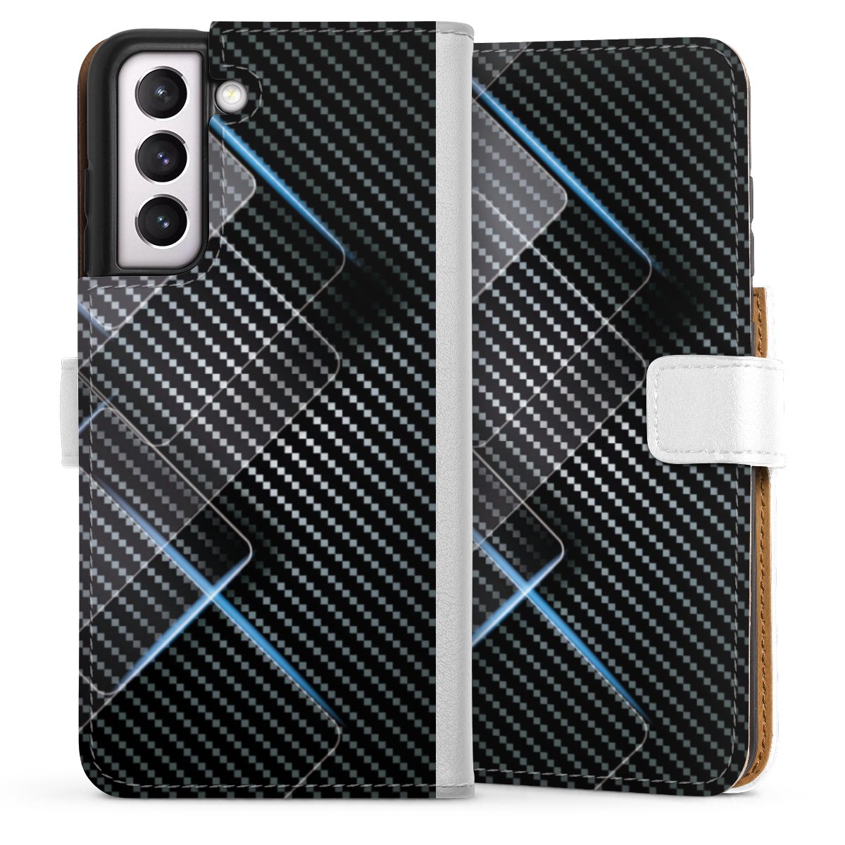 For our Sideflip Case we are using our advanced direct printing technology. The back and frontside are fully printabale, the inside of the phone bag is left unprinted. You can order the phone case without print, printed completely or also with a partial print.