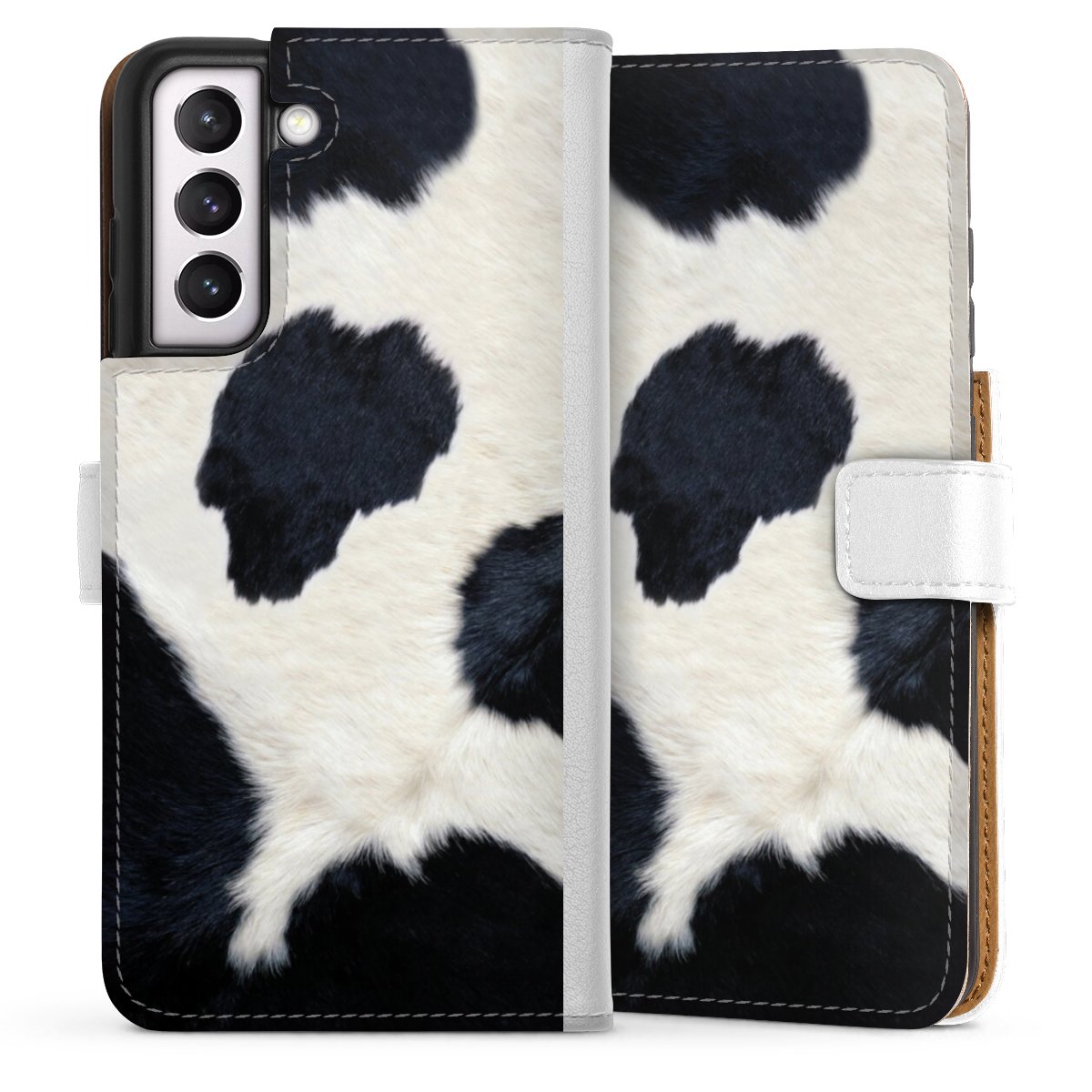 For our Sideflip Case we are using our advanced direct printing technology. The back and frontside are fully printabale, the inside of the phone bag is left unprinted. You can order the phone case without print, printed completely or also with a partial print.