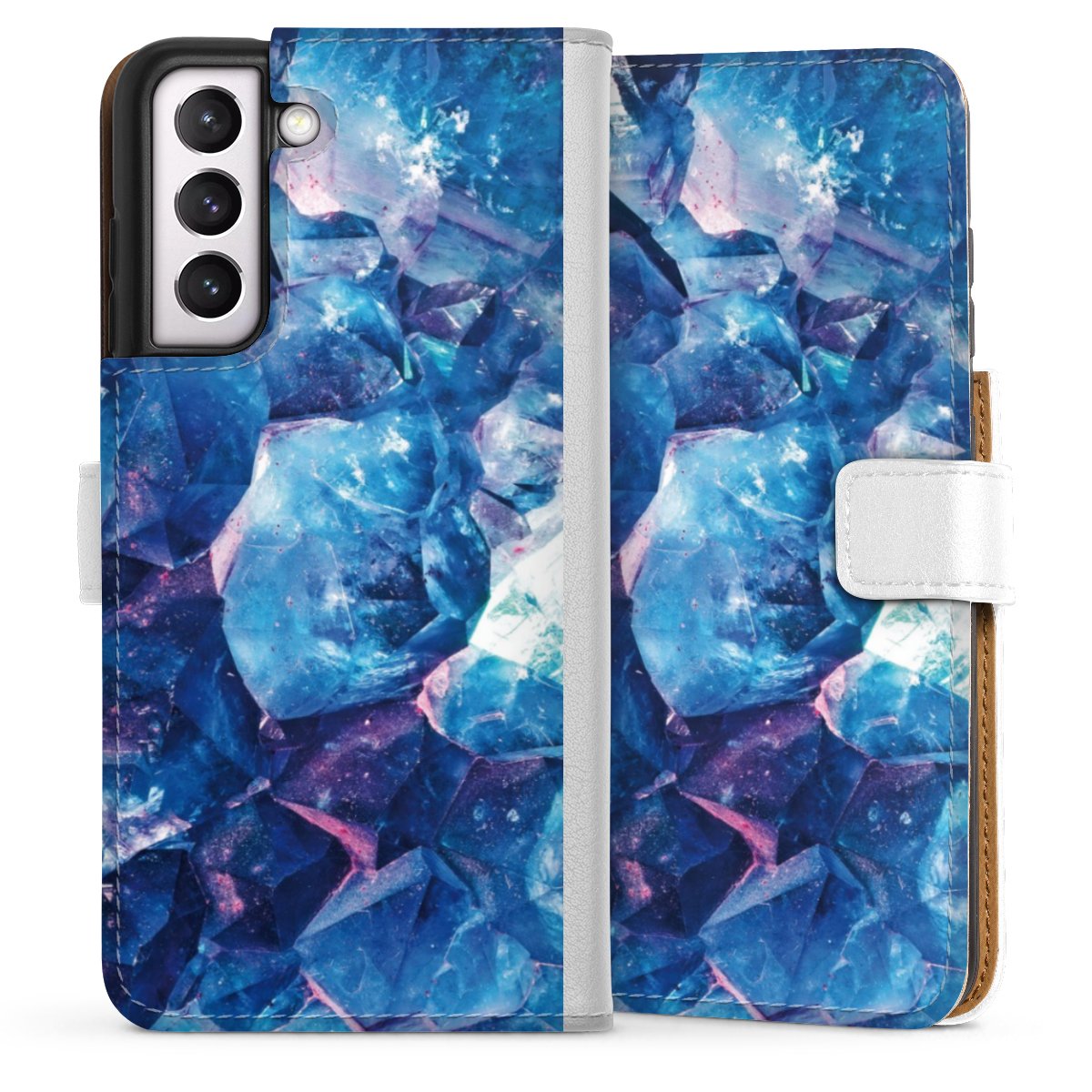 For our Sideflip Case we are using our advanced direct printing technology. The back and frontside are fully printabale, the inside of the phone bag is left unprinted. You can order the phone case without print, printed completely or also with a partial print.