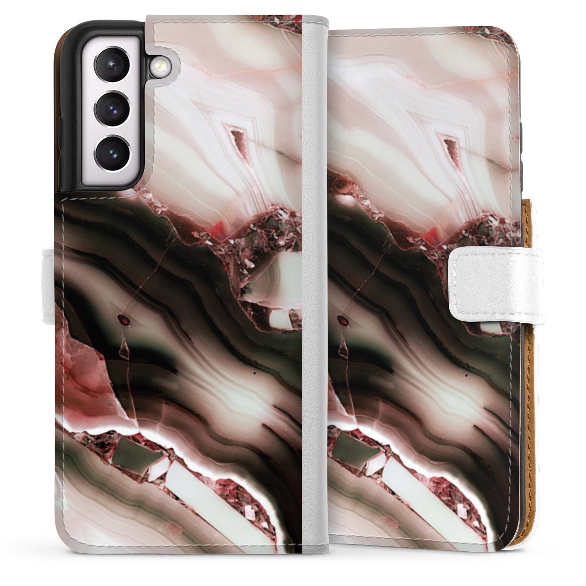 For our Sideflip Case we are using our advanced direct printing technology. The back and frontside are fully printabale, the inside of the phone bag is left unprinted. You can order the phone case without print, printed completely or also with a partial print.