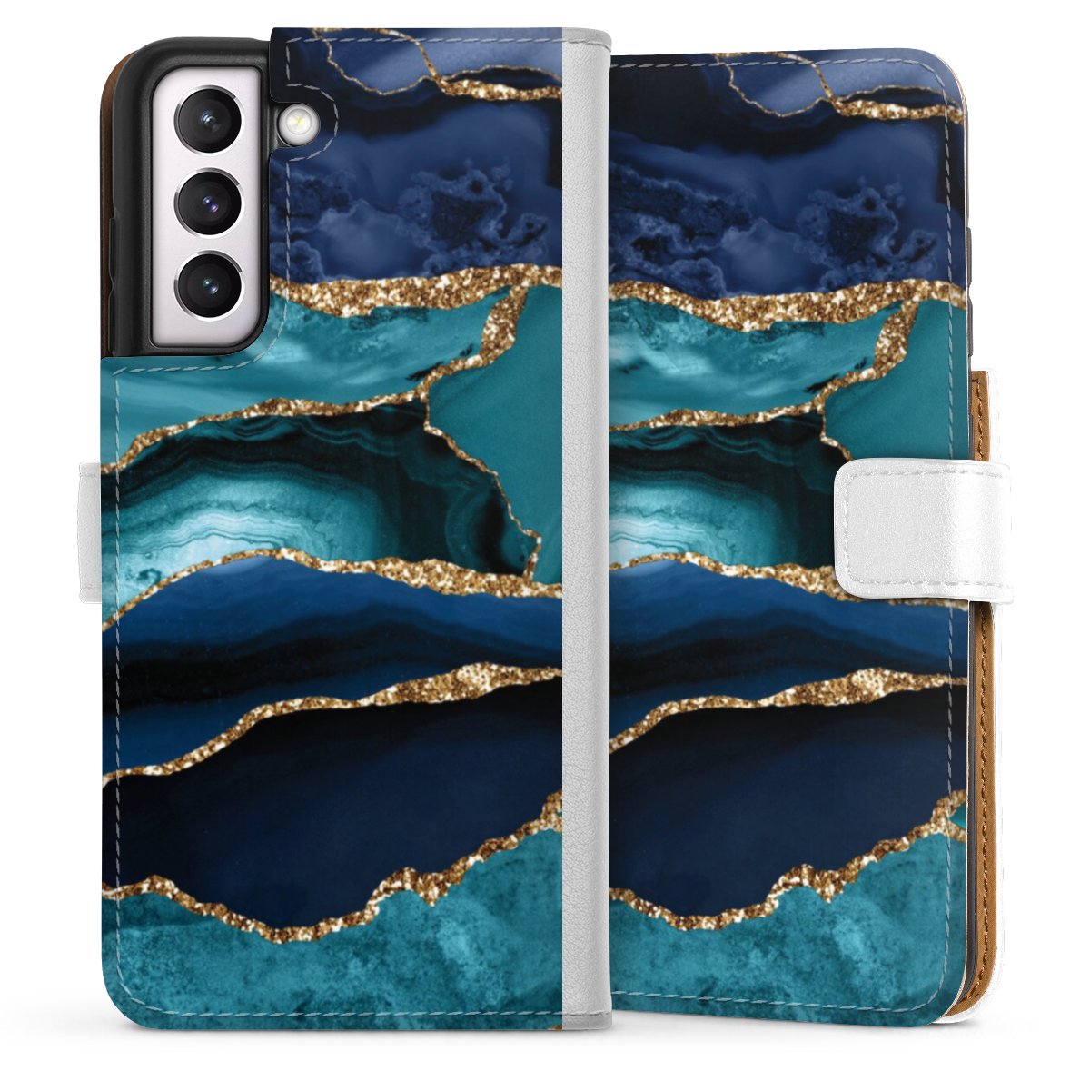 For our Sideflip Case we are using our advanced direct printing technology. The back and frontside are fully printabale, the inside of the phone bag is left unprinted. You can order the phone case without print, printed completely or also with a partial print.